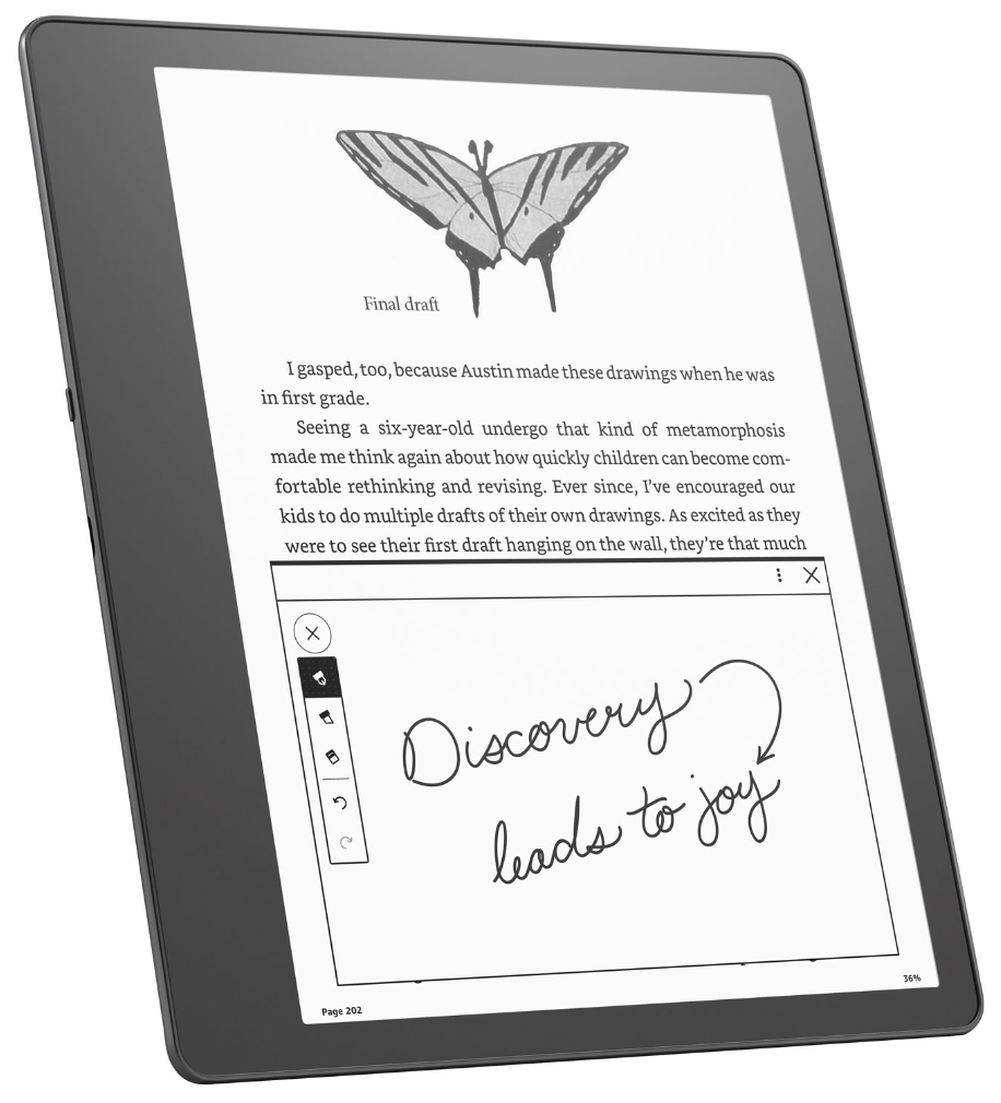 Již brzy: Kindle Scribe poskytuje pravidelné bezplatné aktualizace softwaru, které obsahují nové funkce. V nadcházejících měsících přidá Kindle Scribe nástroje pro výběr lasa, vylepšenou organizaci a navigaci notebooků a možnost odesílat dokumenty do Kindle Scribe přímo z aplikace Microsoft Word (vyžaduje předplatné Microsoft 365).