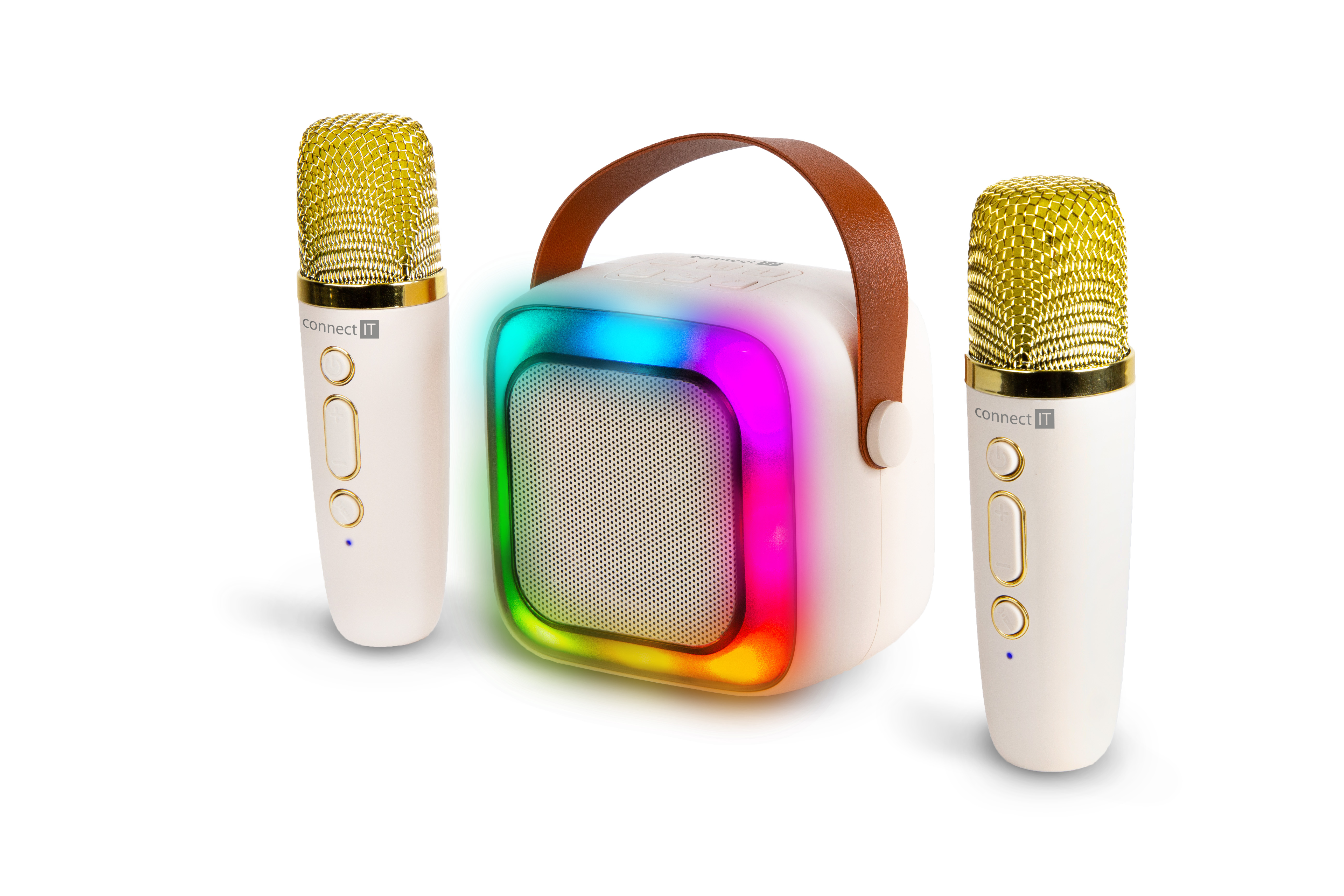 CONNECT IT 2Mic bezdrátový mini party karaoke reproduktor + 2 x mikrofon BÉŽOVÝ