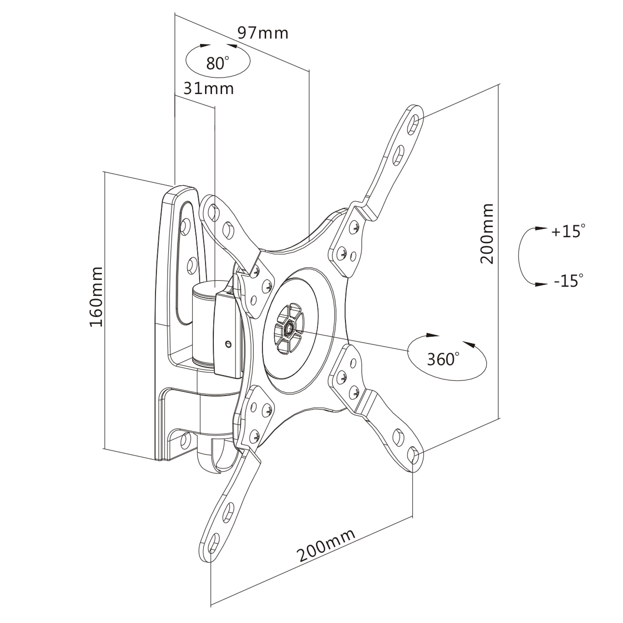 Nastavení do požadovaného úhlu nevyžaduje povolení ani opětovné utažení šroubů (stačí pouze uchopit okraje TV a nastavit úhel)