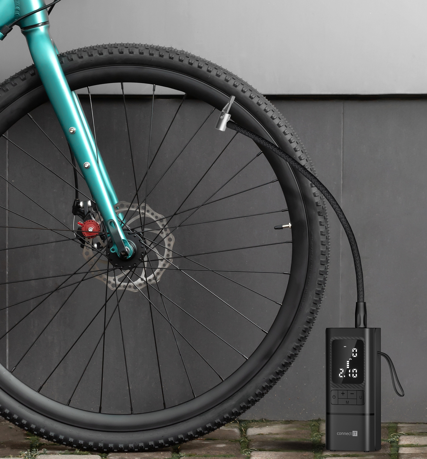 Kompresor disponuje velkým LED displejem, který zobrazuje stav nabití baterie, výběr přednastaveného režimu, výši tlaku a aktuální hodnotu tlaku. K dispozici je pět přednastavených režimů s výchozím rozsahem tlaku vzduchu pro jednotlivé použití (auto/motorka/kolo/míč/manuál). V manuálním režimu si můžete zvolit hodnotu, kterou si kompresor bude pamatovat pro příští použití. Díky vestavěné Li-Ion baterii s kapacitou 6 000 mAh, budete mít jistotu bezproblémového použití kdykoliv a kdekoliv. V případě nouze můžete kompresor využít i jako powerbanku a díky LED světlu si můžete posvítit při zhoršených světelných podmínkách. Kompresor je vyroben z kombinace polykarbonátu a ABS, který je extrémně pevný a tvrdý, odolný vůči vysokým teplotám (115 °C) a nárazu.