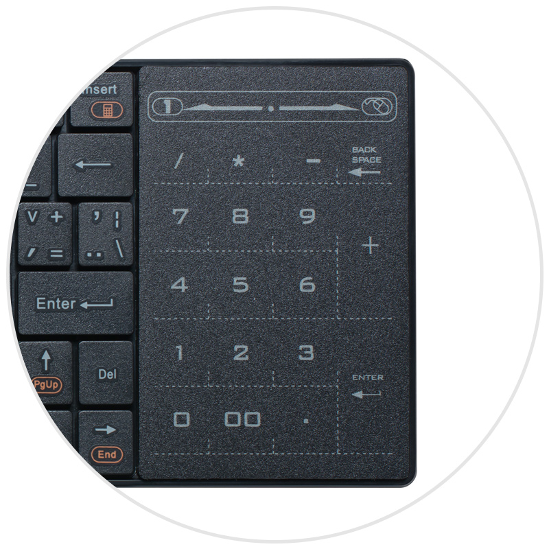 Touch pad může být přepnut mezi numerickou klávesnicí / myší