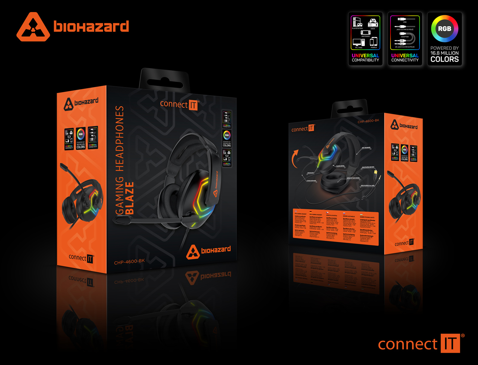 CONNECT IT BIOHAZARD Blaze herní sluchátka s mikrofonem, 1xJack+USB, ČERNÁ