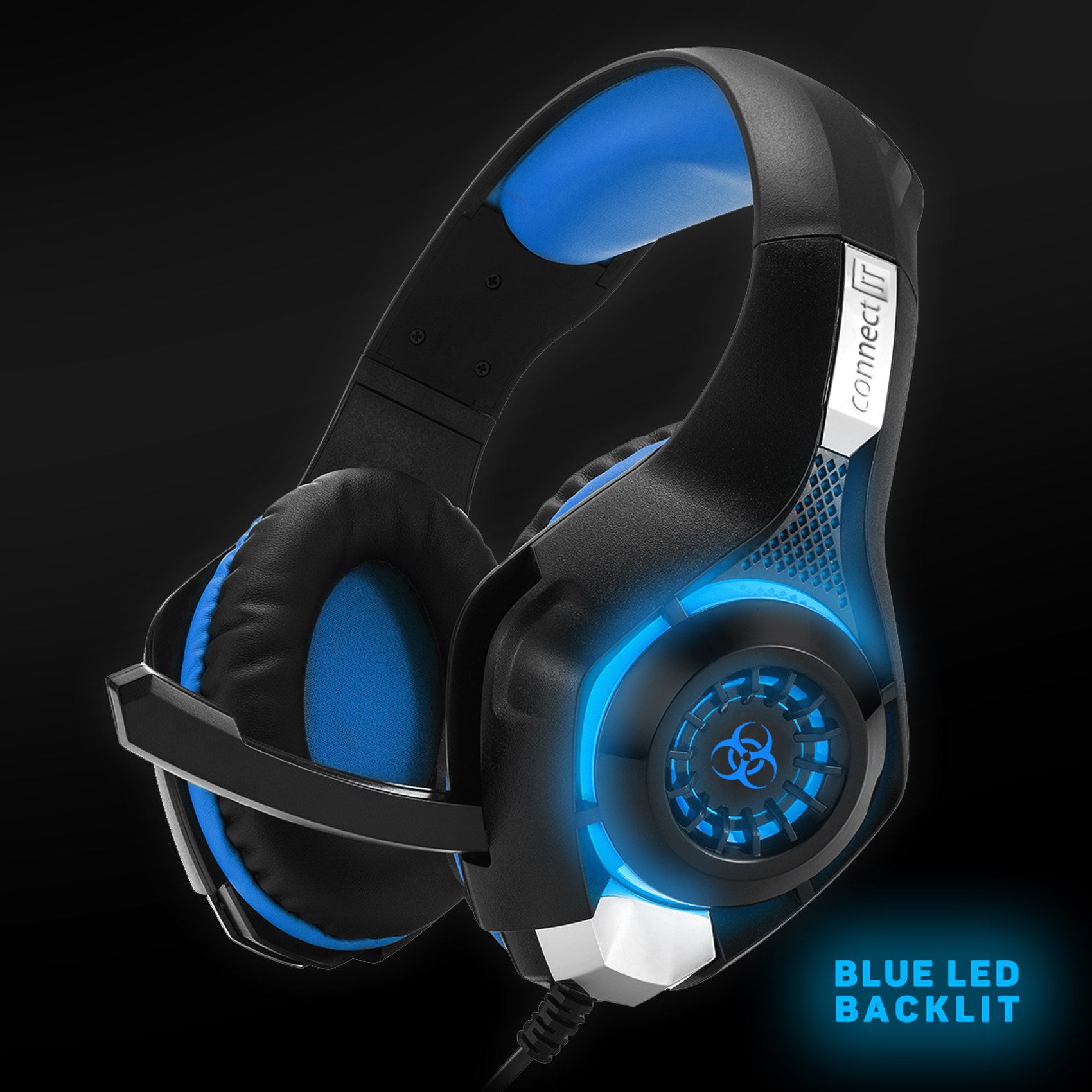 CONNECT IT BIOHAZARD herní sluchátka s mikrofonem, 2xJack+USB, MODRÁ