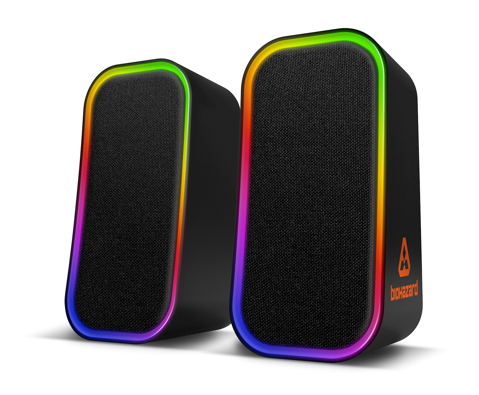 Gamingové reproduktory BIOHAZARD pro hráče počítačových her s připojením pomocí bluetooth nebo AUX vstupem.