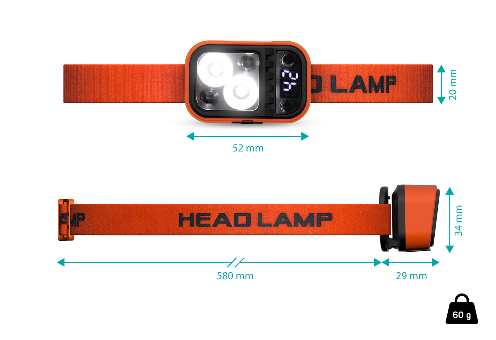 Vestavěný lithium-iontový akumulátor s kapacitou 700 mAh zajišťuje výdrž až 7 hodin dle zvoleného režimu a dobíjí se přes USB-C konektor. Odolné tělo z ABS plastu s krytím IPX4 chrání čelovku proti stříkající vodě, takže je vhodná i do nepříznivých podmínek.