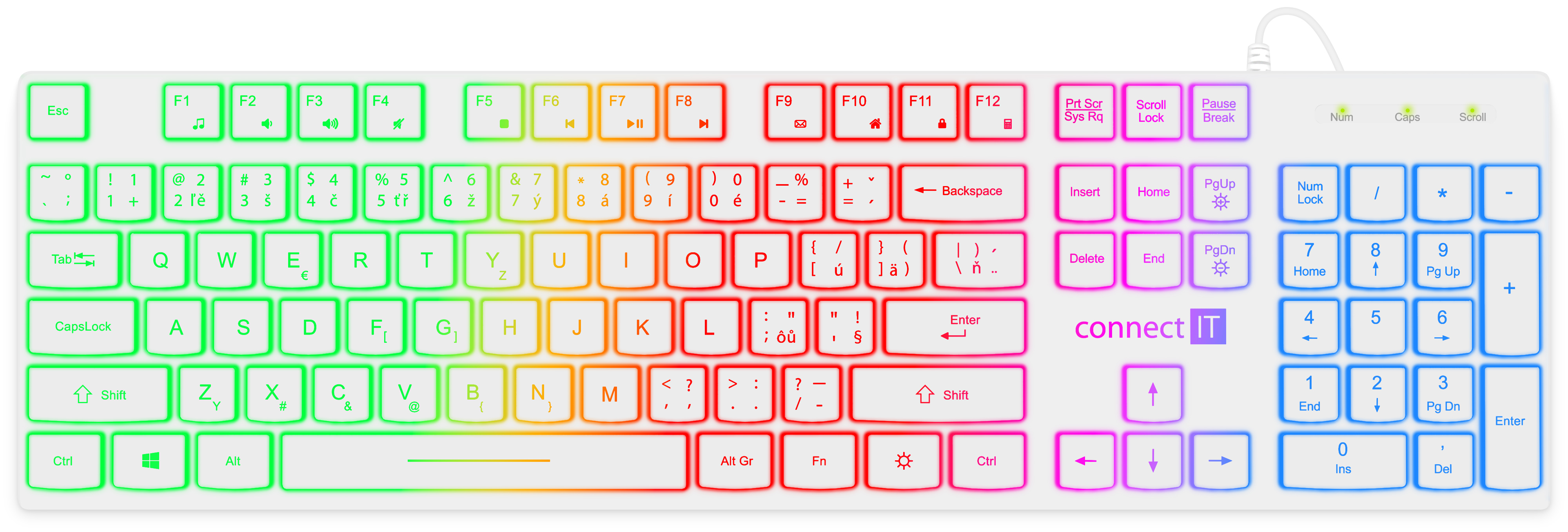 CONNECT IT Chocolate RNBW kancelářská podsvícená klávesnice (CZ + SK verze) WHITE