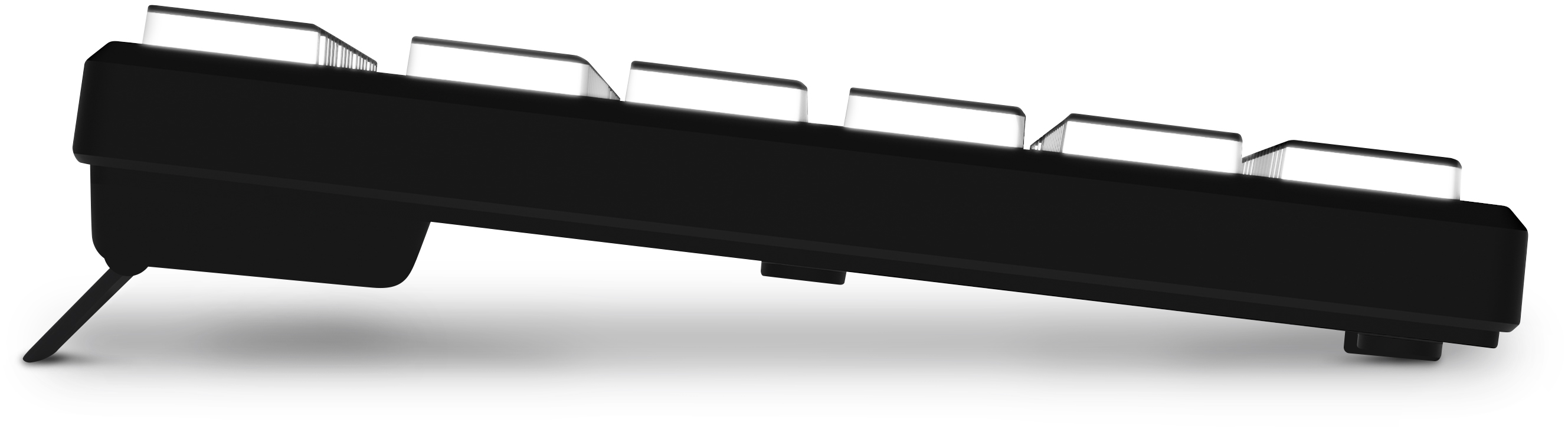 Klávesnice kromě klasických funkcí disponuje 12 multimediálními klávesami, které se obzvláště hodí do kancelářského prostředí. Její bílé podsvícení vám umožní pracovat i v pozdních hodinách při nízkém osvětlení. Příjemný ergonomický náklon klávesnice pomáhá proti únavě zápěstí během dlouhých pracovních relacích.