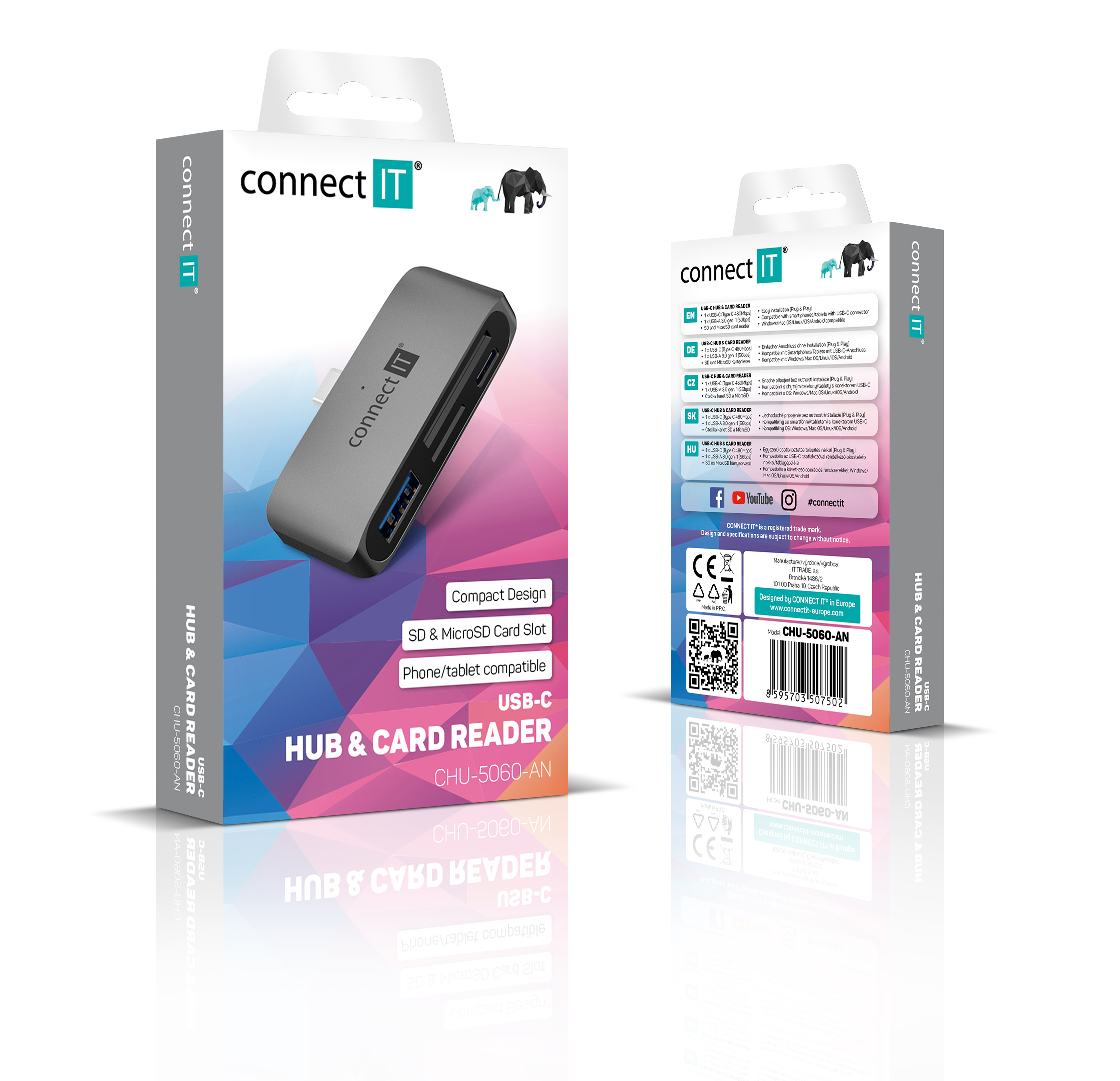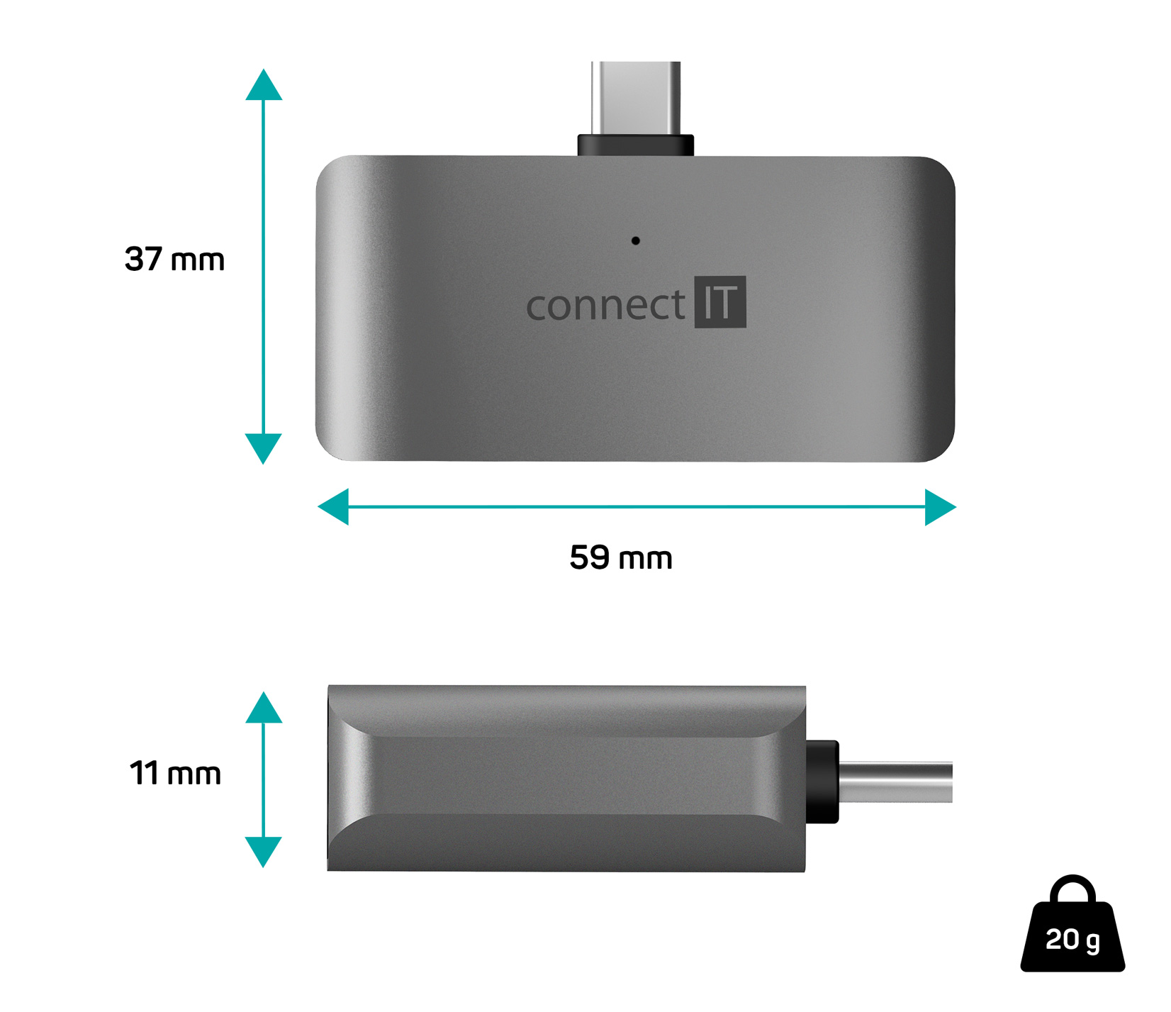 CONNECT IT CompactPRO externí USB-C hub + čtečka karet ANTRACITOVÁ