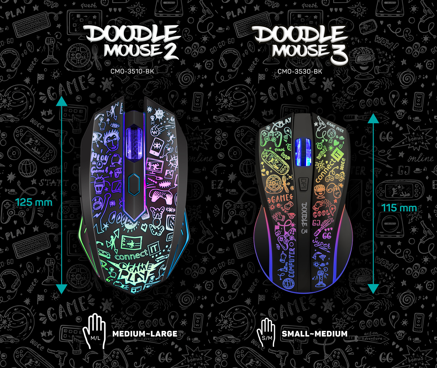 Optická bezdrátová myš DOODLE 2 edition pro hráče počítačových her