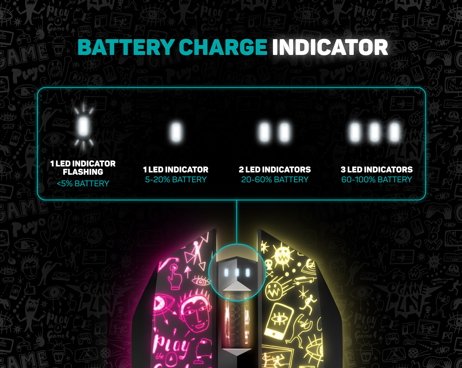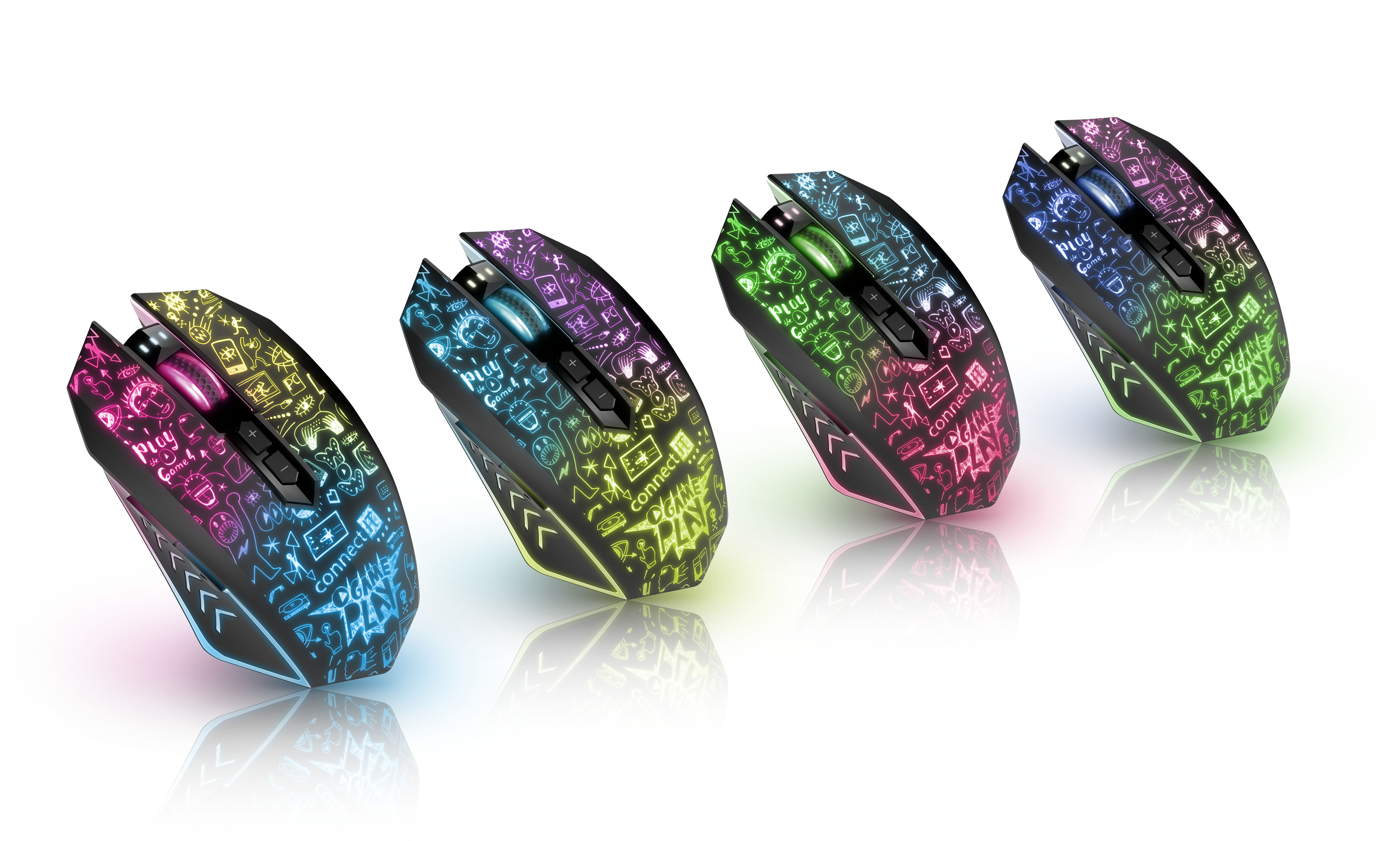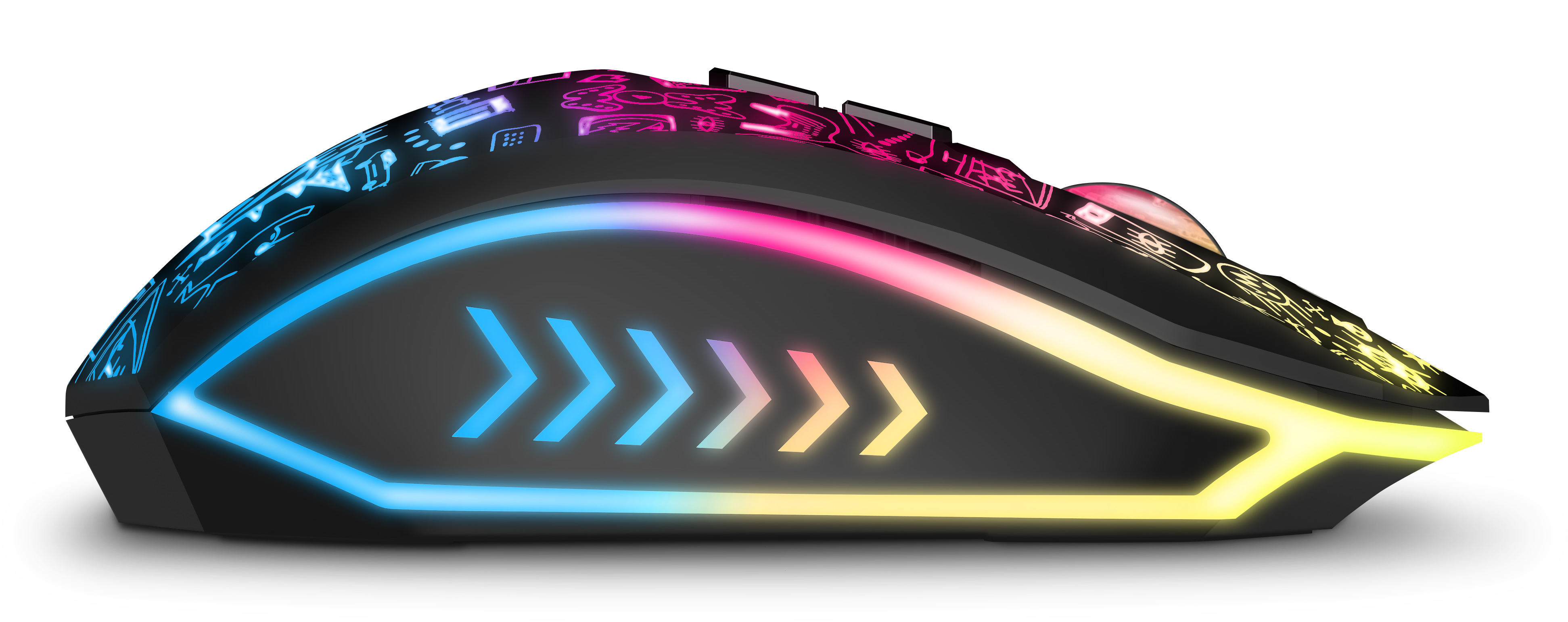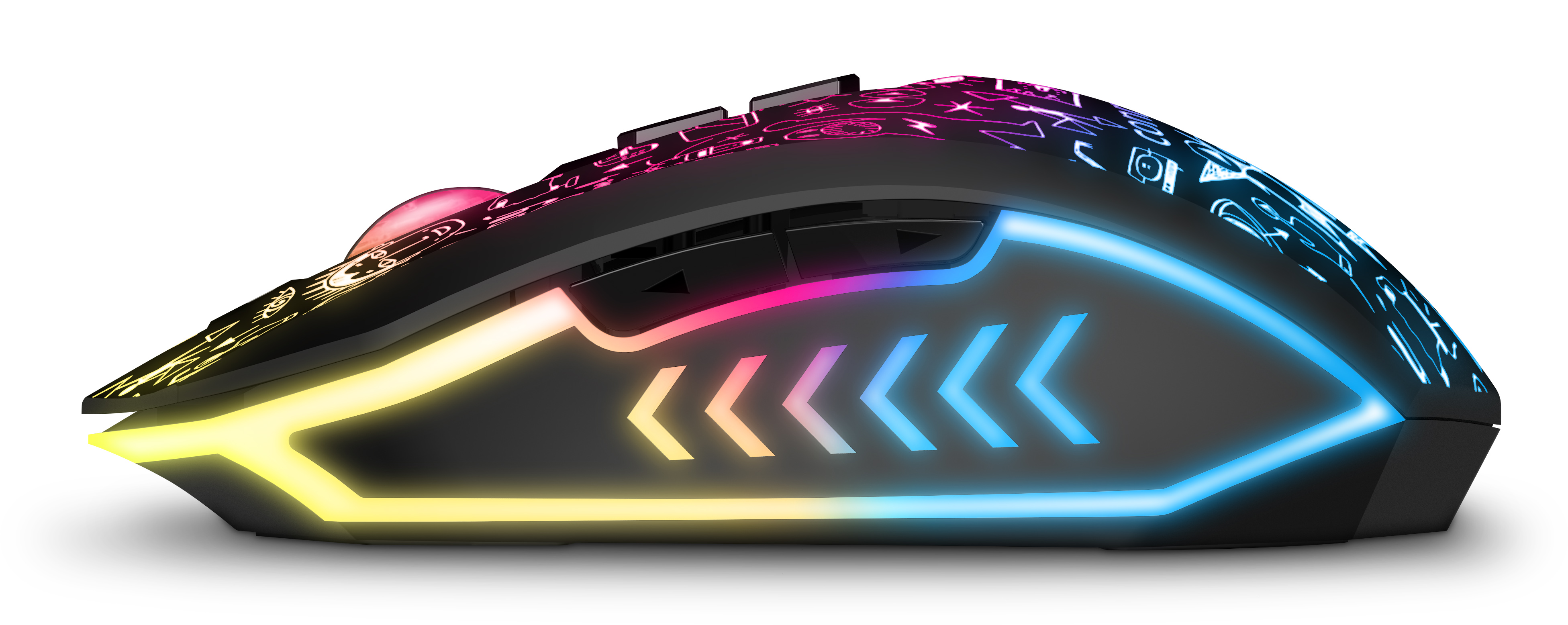 Profesionální bezdrátová gamingová myš DOODLE 2 PRO pro hráče počítačových her s Rainbow podsvícením těla i kolečka.