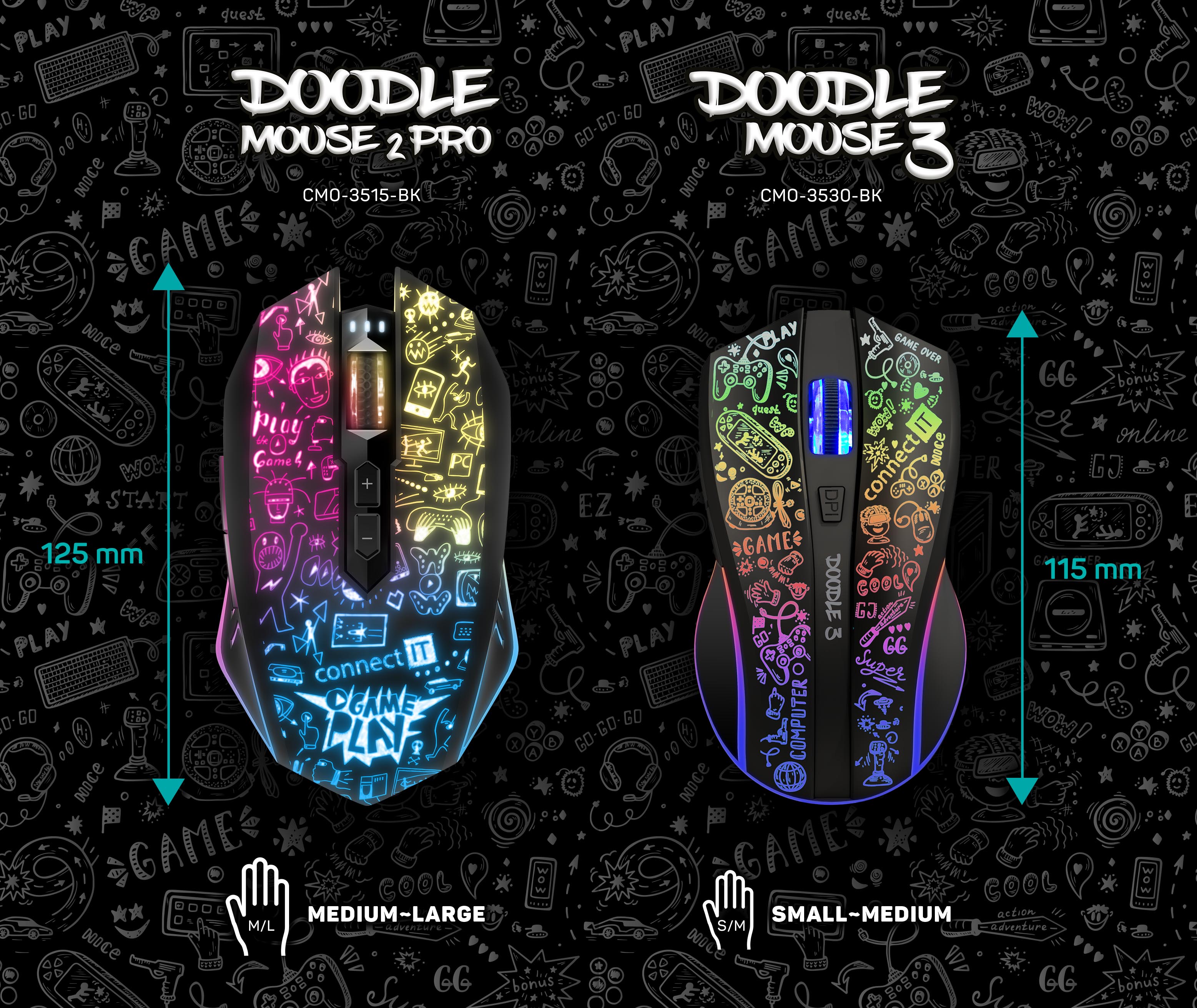 CONNECT IT DOODLE 2 PRO bezdrátová herní myš, ČERNÁ