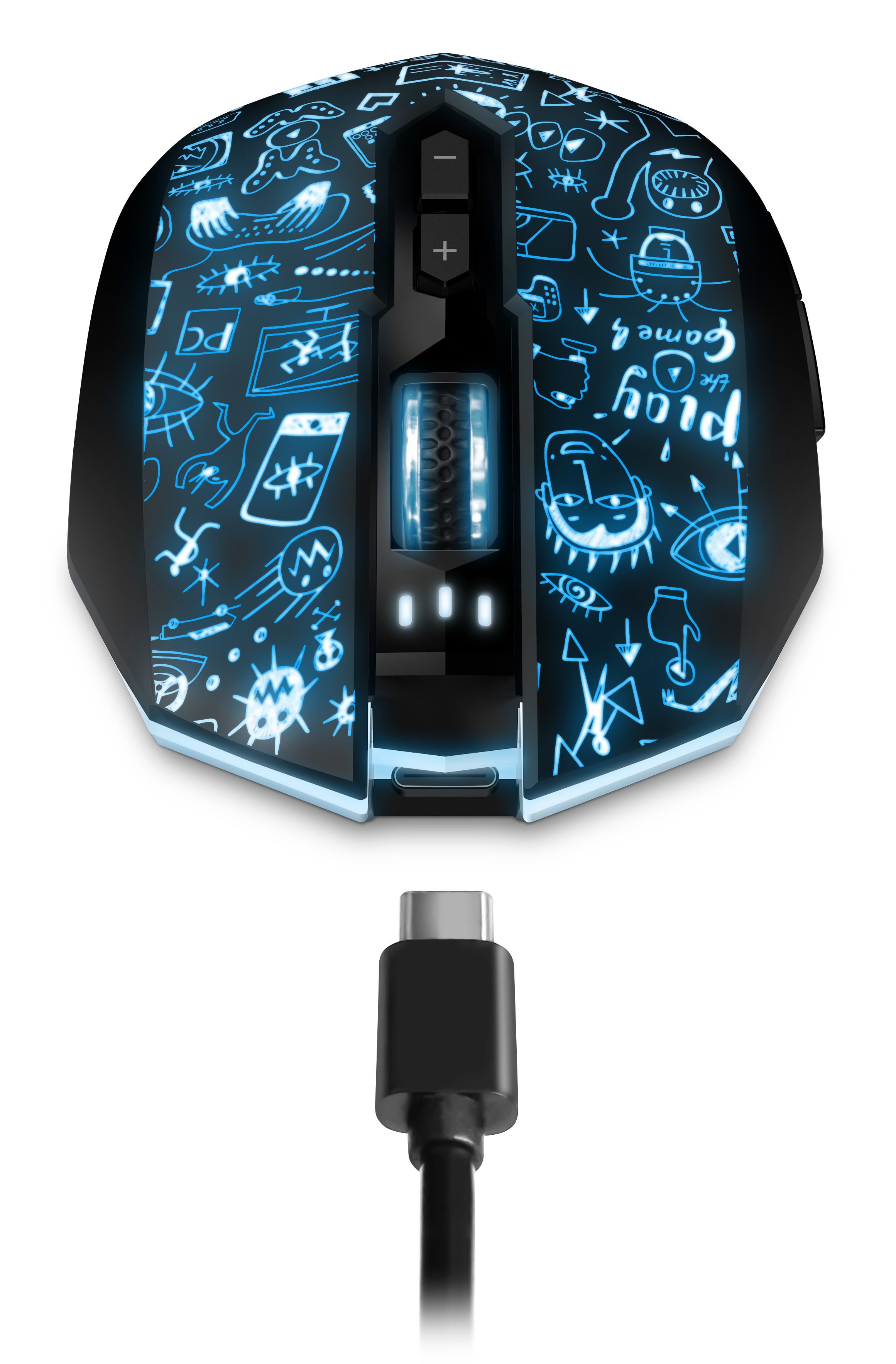 USB-C nabíjecí port v přední části myši