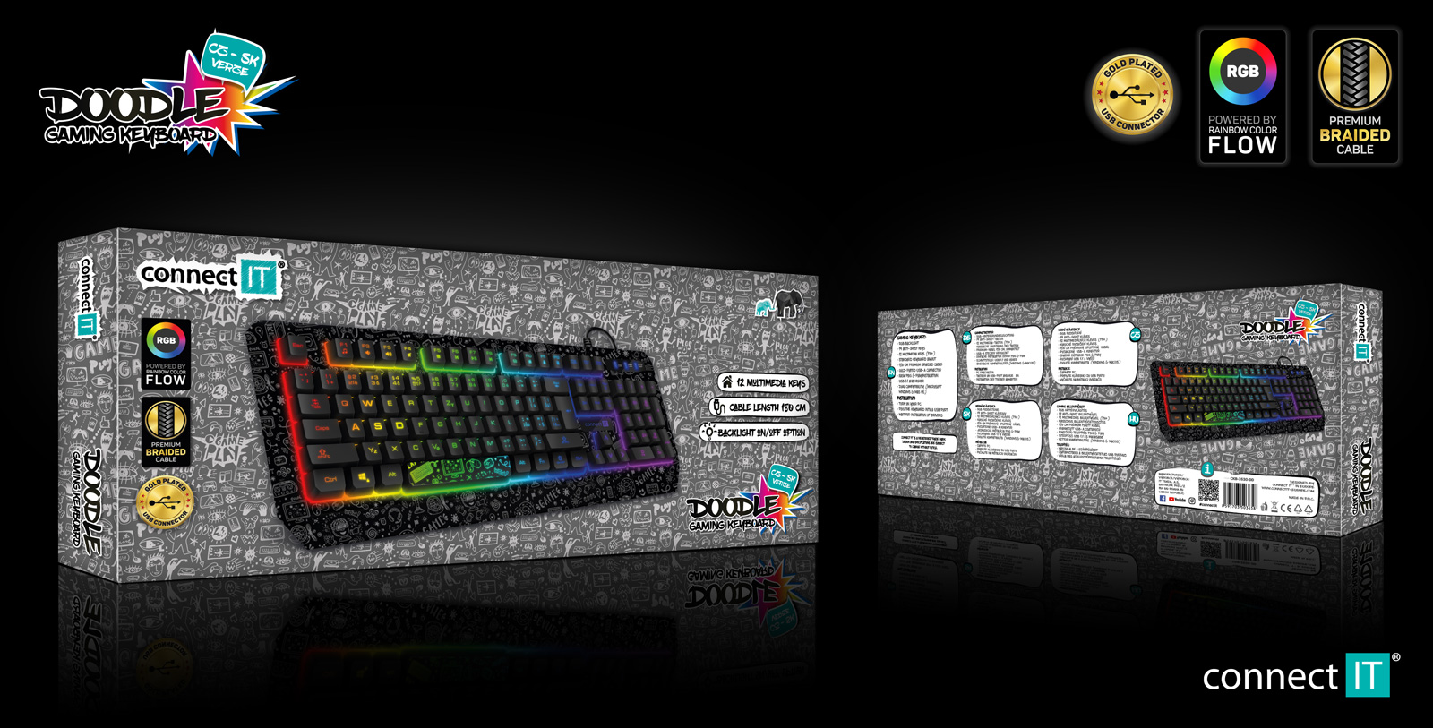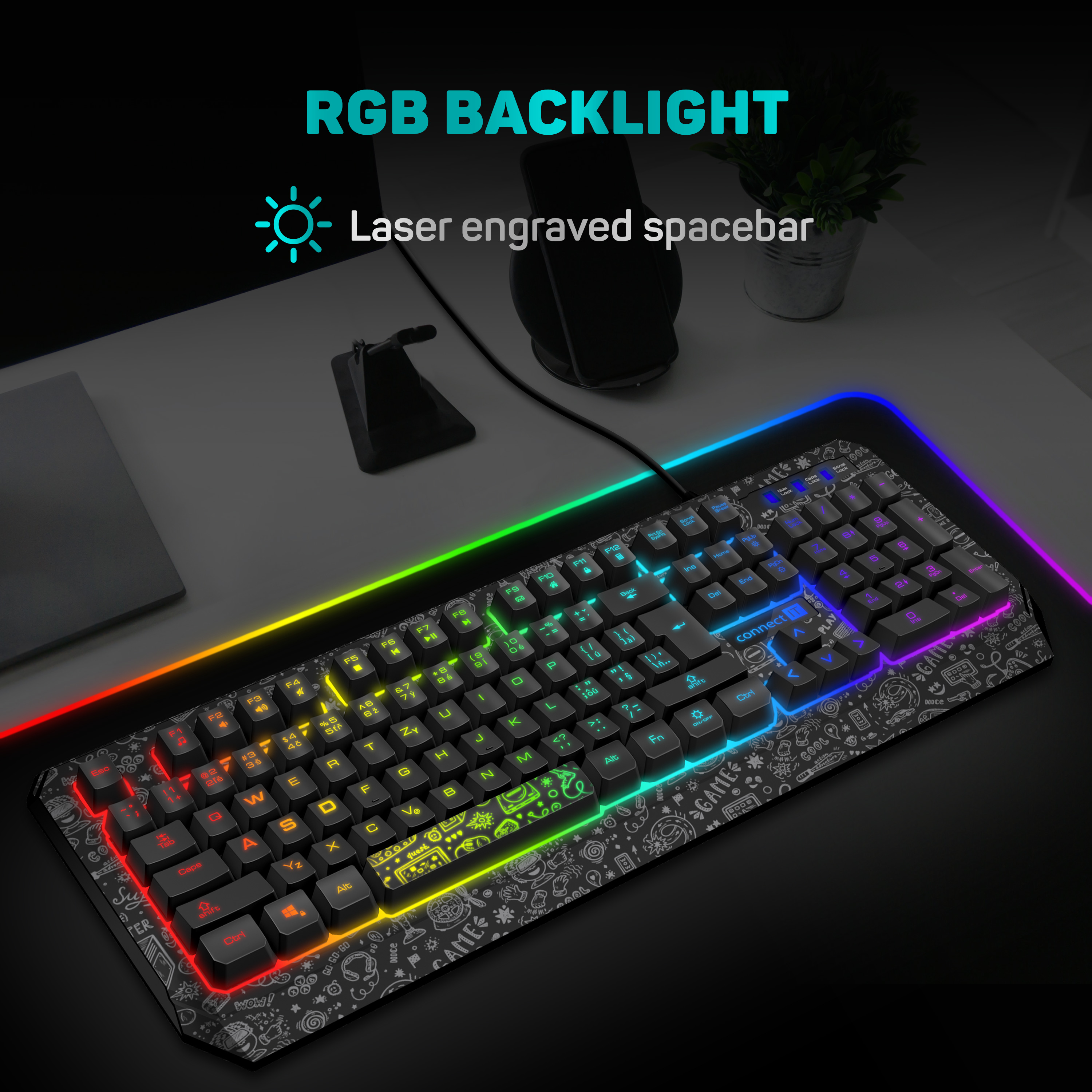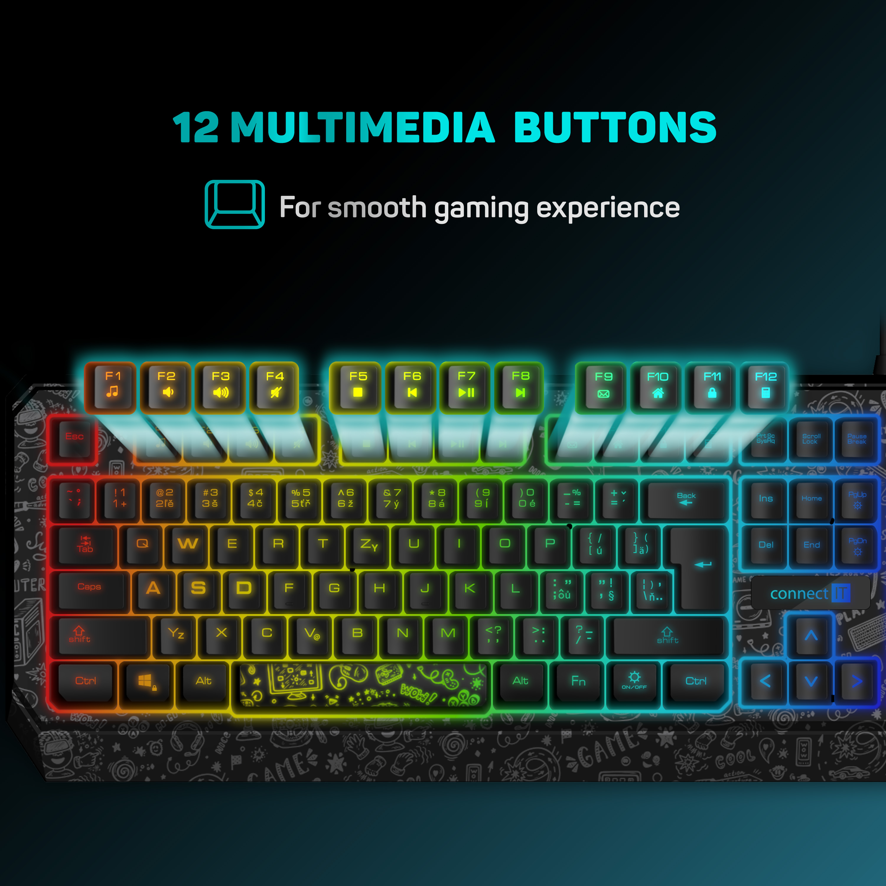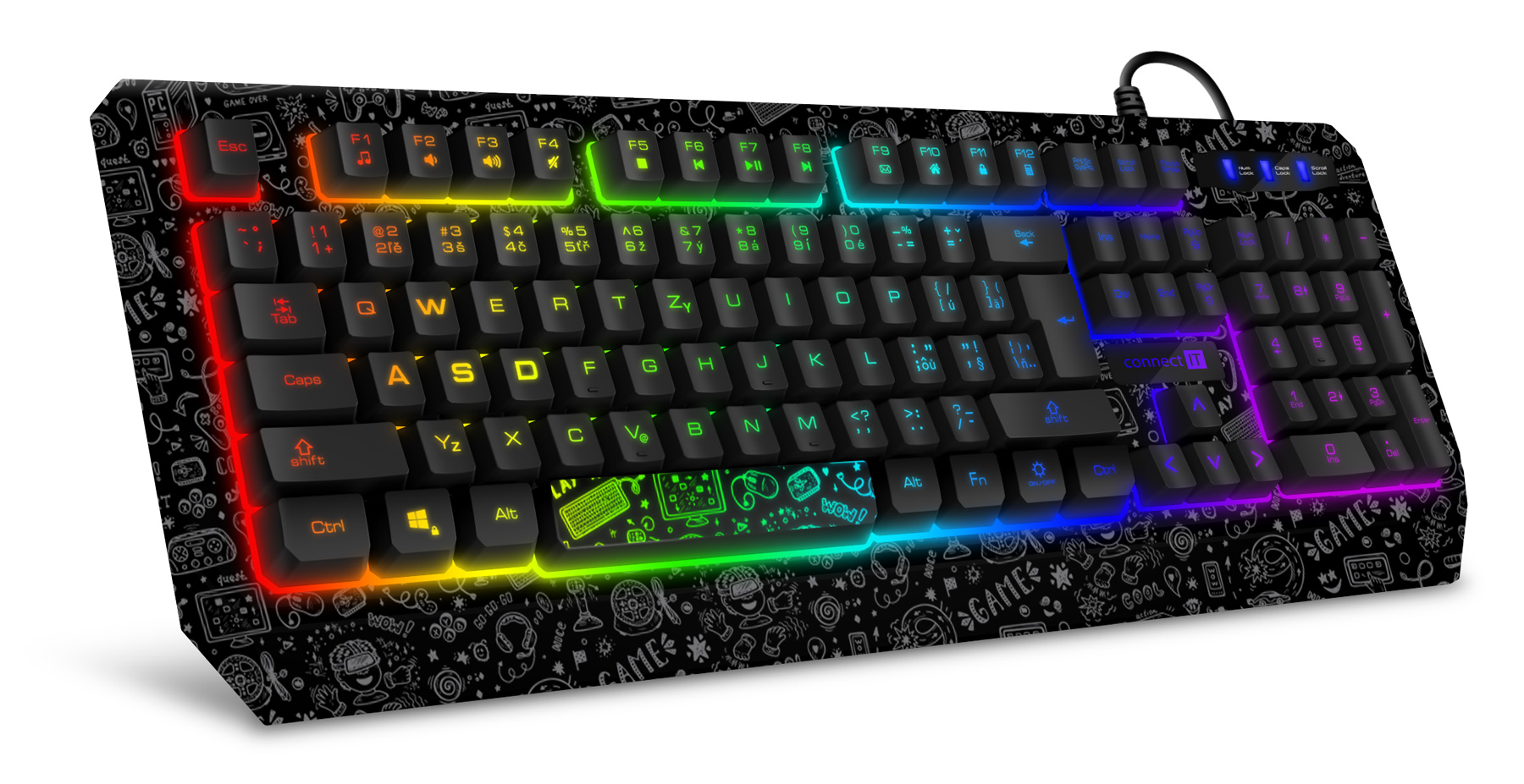 CONNECT IT DOODLE RGB herní klávesnice (CZ+SK verze), ČERNÁ