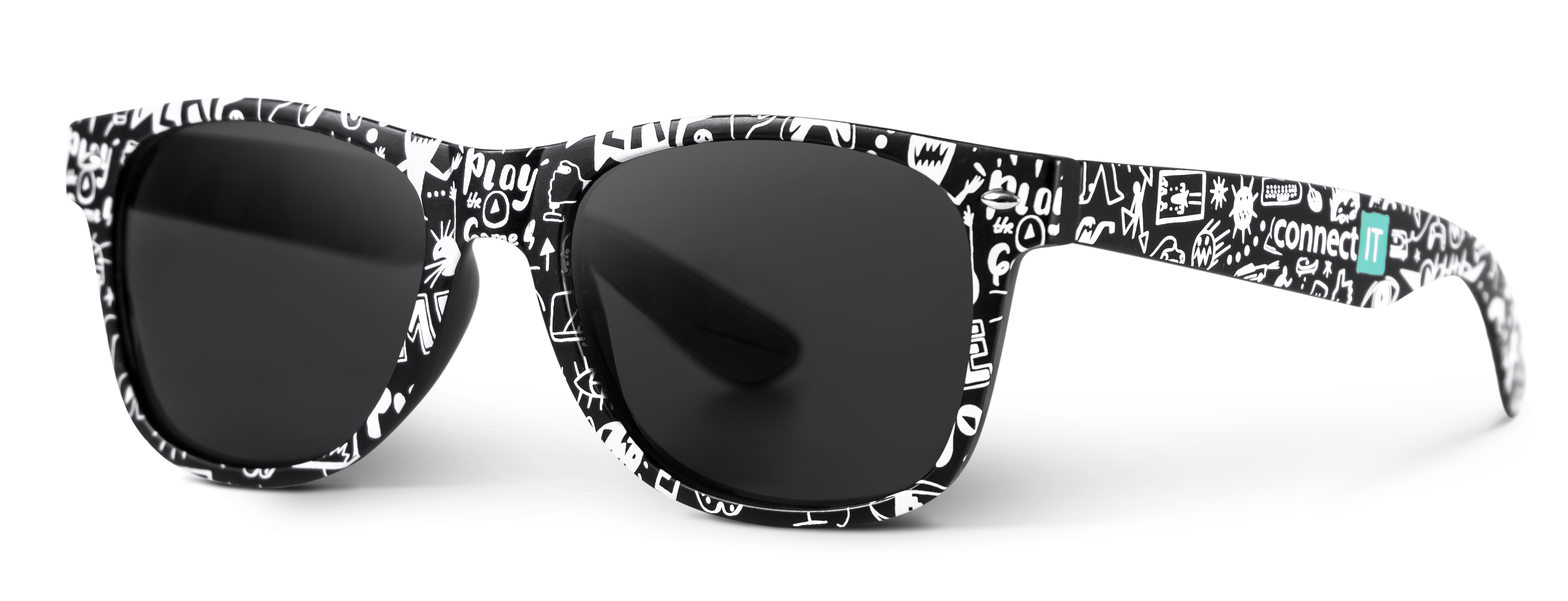 Sluneční brýle s doodle vzorem. Skla mají UV filtr a blokují 100 % škodlivého záření. Lehké brýle, které dobře drží na obličeji.