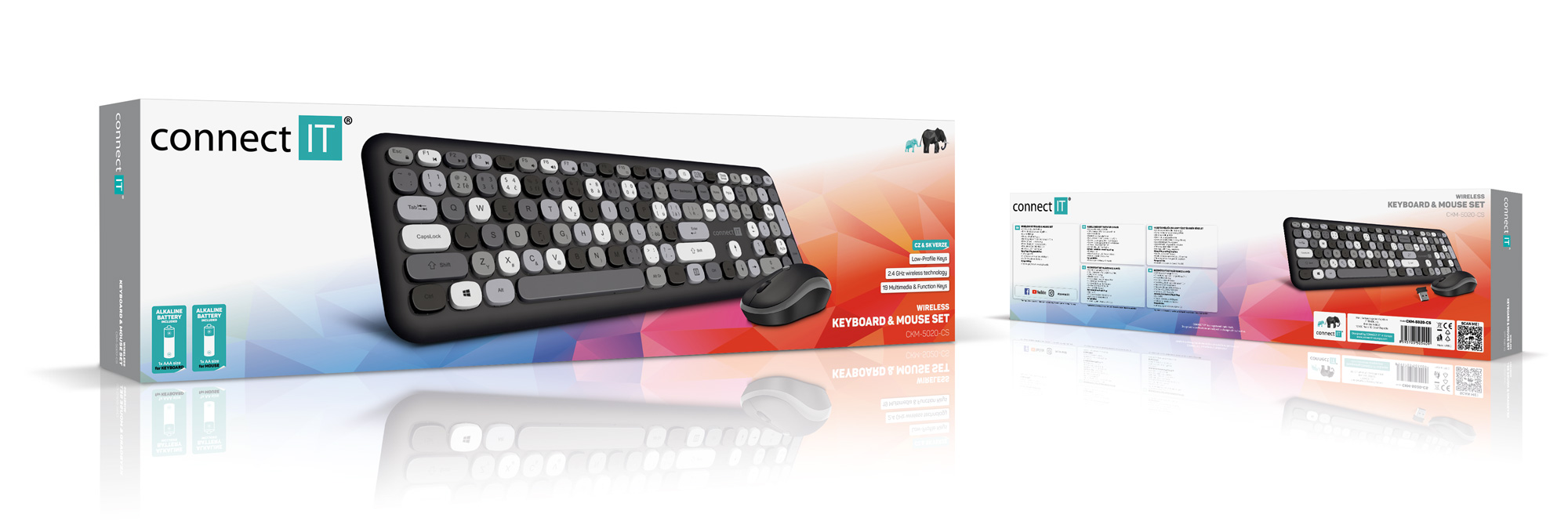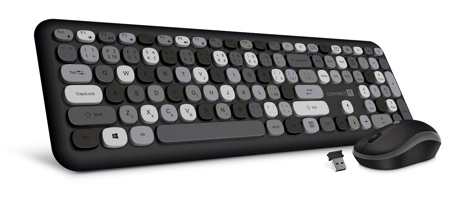 CONNECT IT FASHION combo bezdrátová černo-šedá klávesnice + myš, (+1x AAA +1x AA baterie zdarma), CZ + SK layout