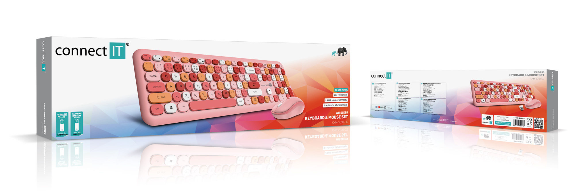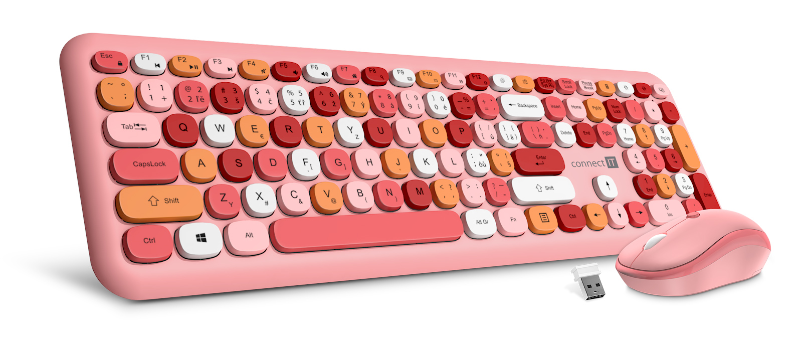 CONNECT IT FASHION combo bezdrátová růžová klávesnice + myš, (+1x AAA +1x AA baterie zdarma), CZ + SK layout