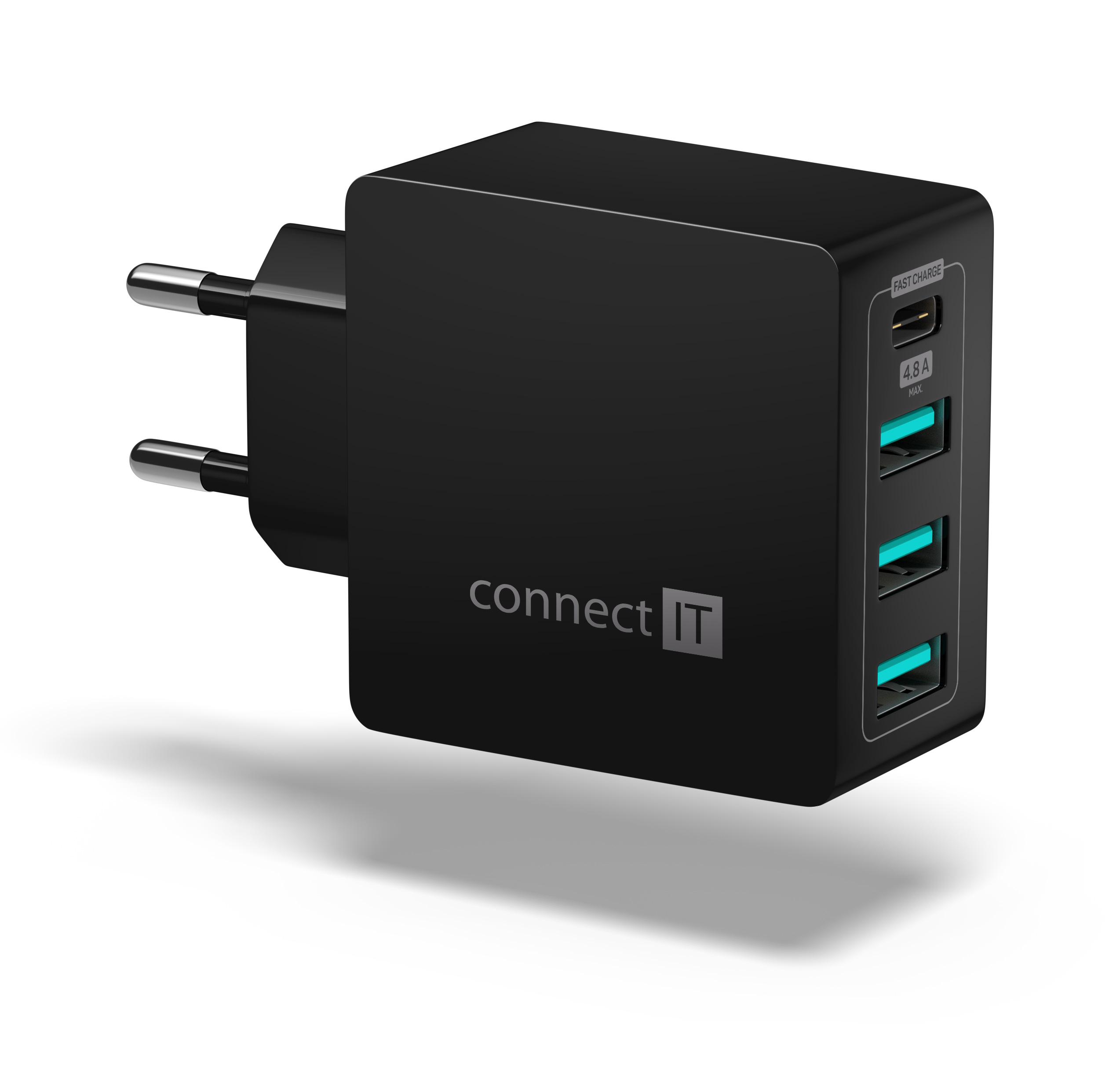 CONNECT IT Fast Charge nabíjecí adaptér 3xUSB-A + 1xUSB-C, 4,8A, černý