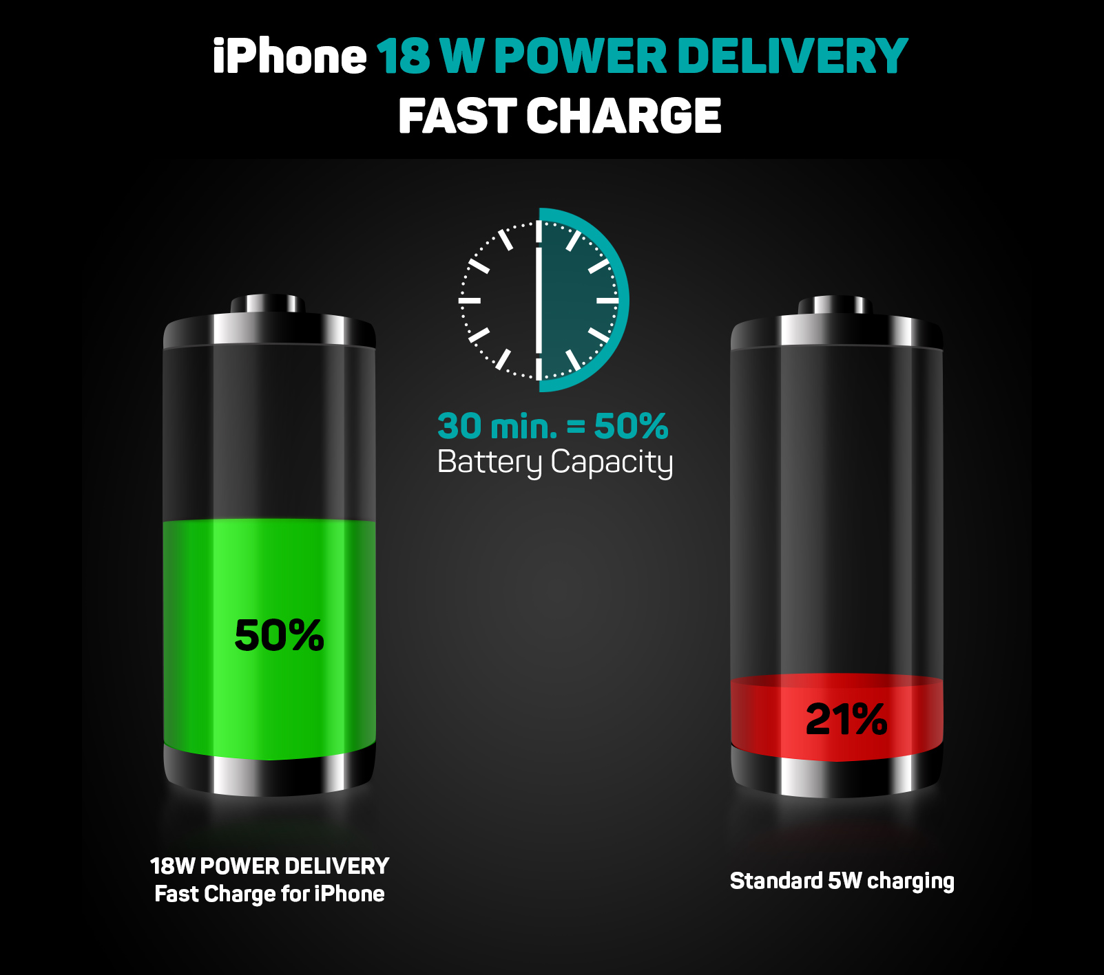 iPhone 8 a vyšší dobije na 50% kapacity baterie za 30 minut