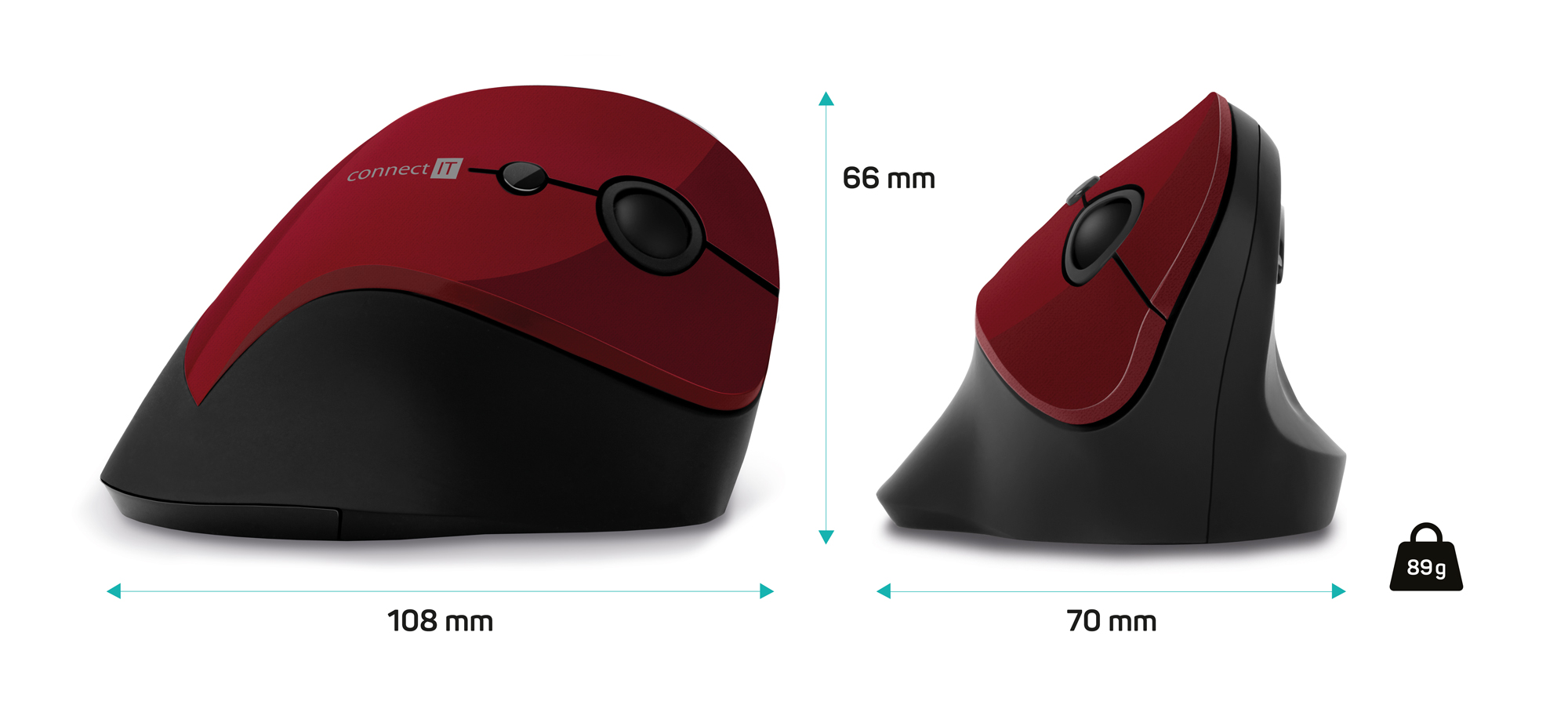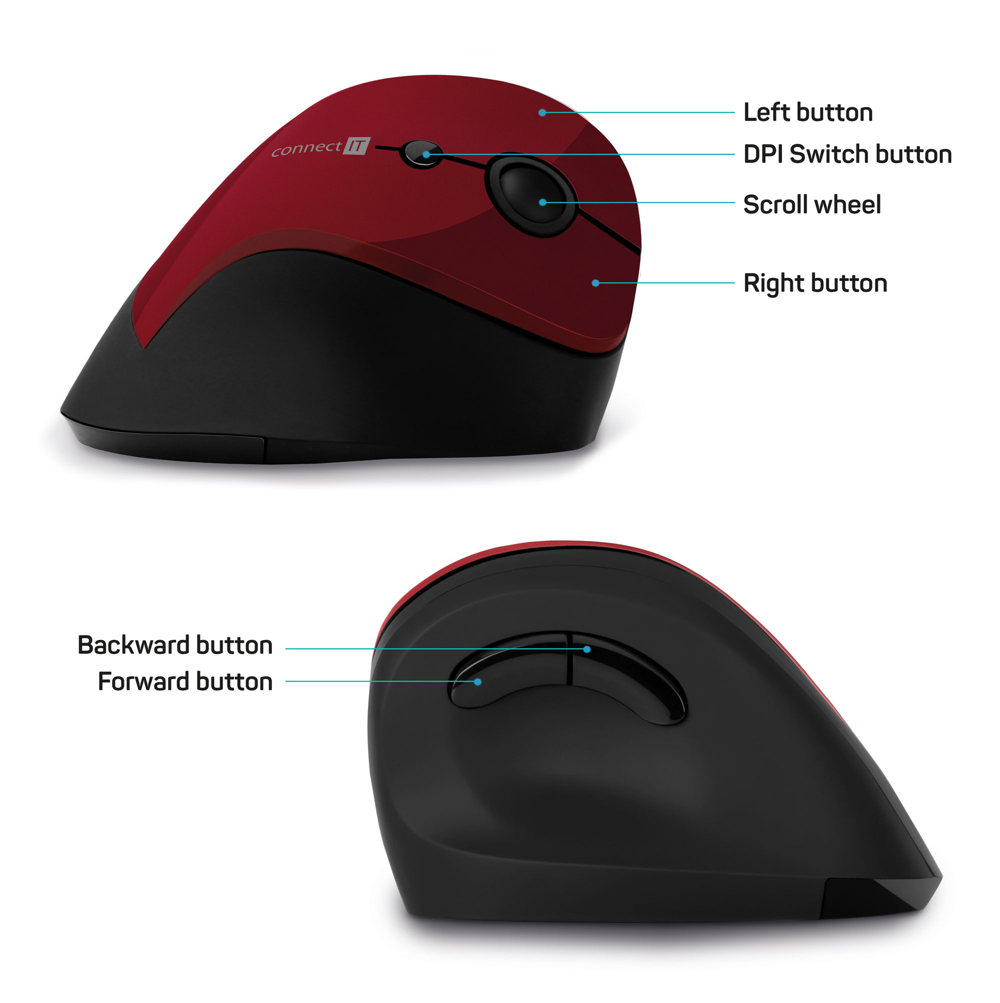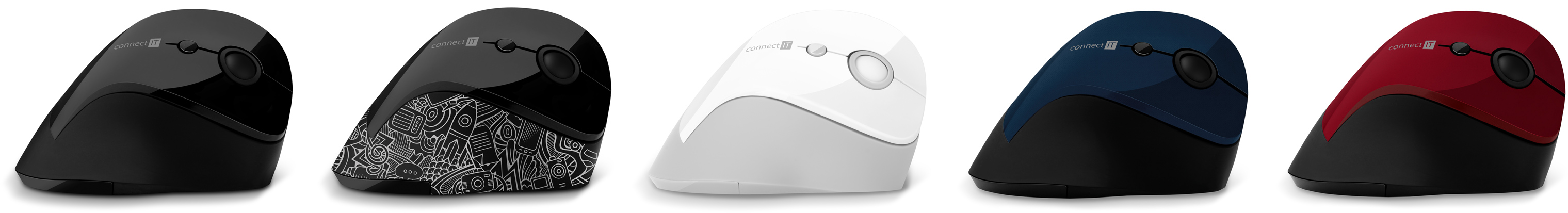 CONNECT IT FOR HEALTH ergonomická vertikální myš, (+ 1x AA baterie zdarma), bezdrátová, ČERVENÁ
