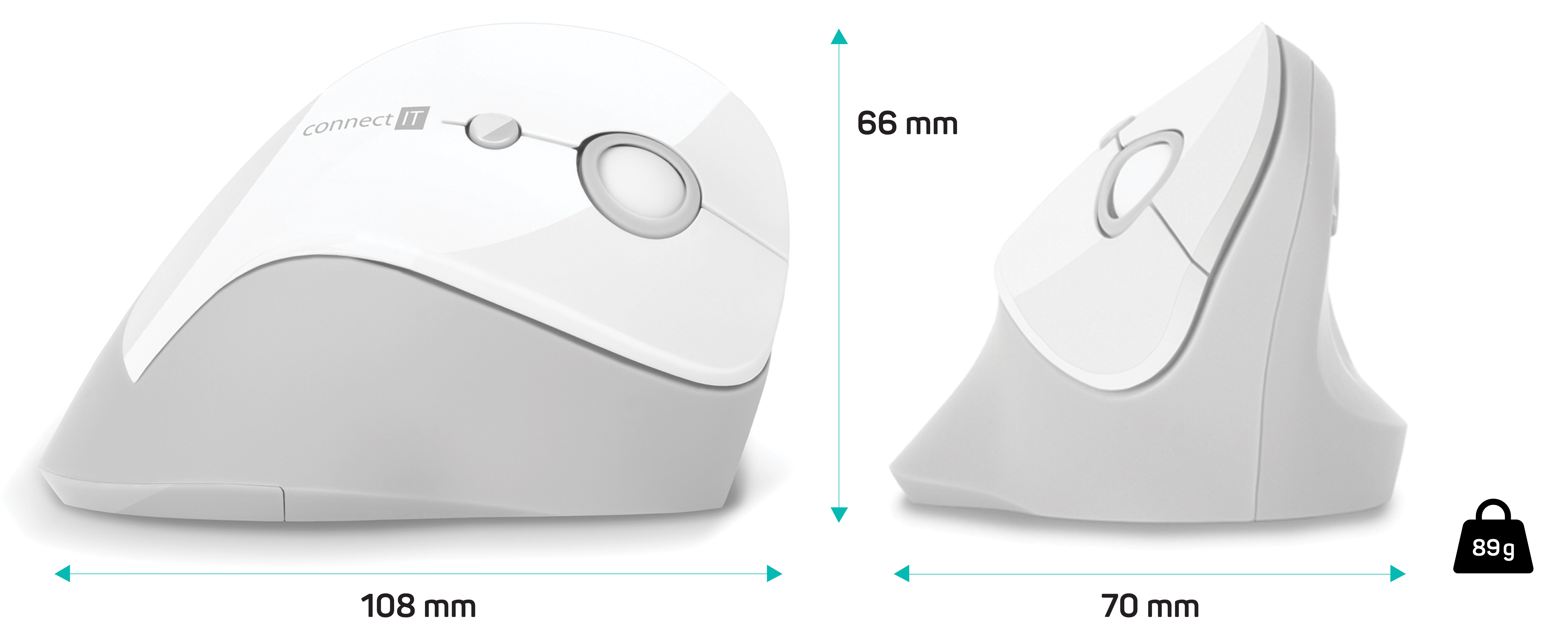 CONNECT IT FOR HEALTH Gloss ergonomická vertikální myš, (+ 1x AA baterie zdarma), bezdrátová, BÍLÁ