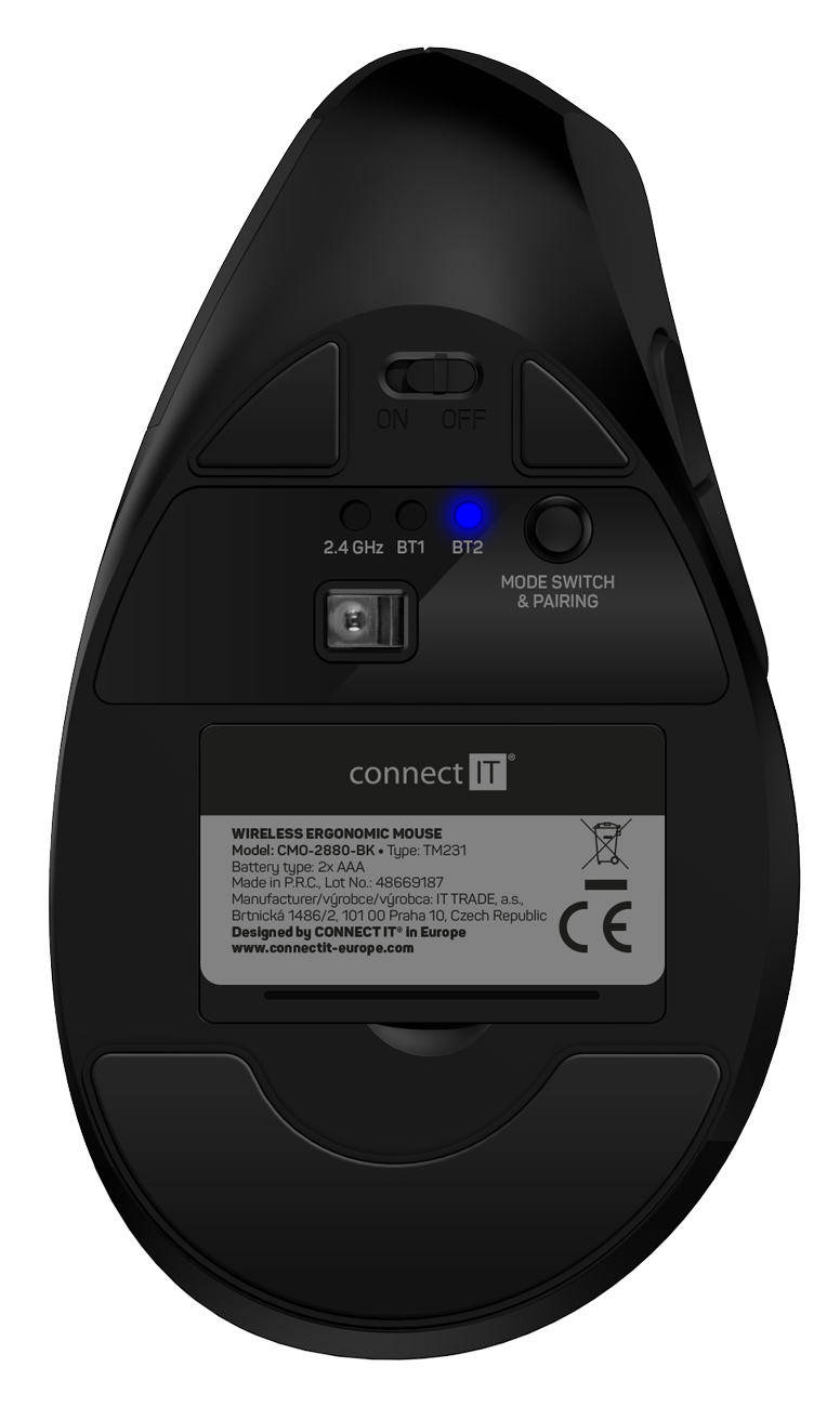 CONNECT IT FOR HEALTH Verti TriMode ergonomická vertikální myš, bezdrátová, ČERNÁ