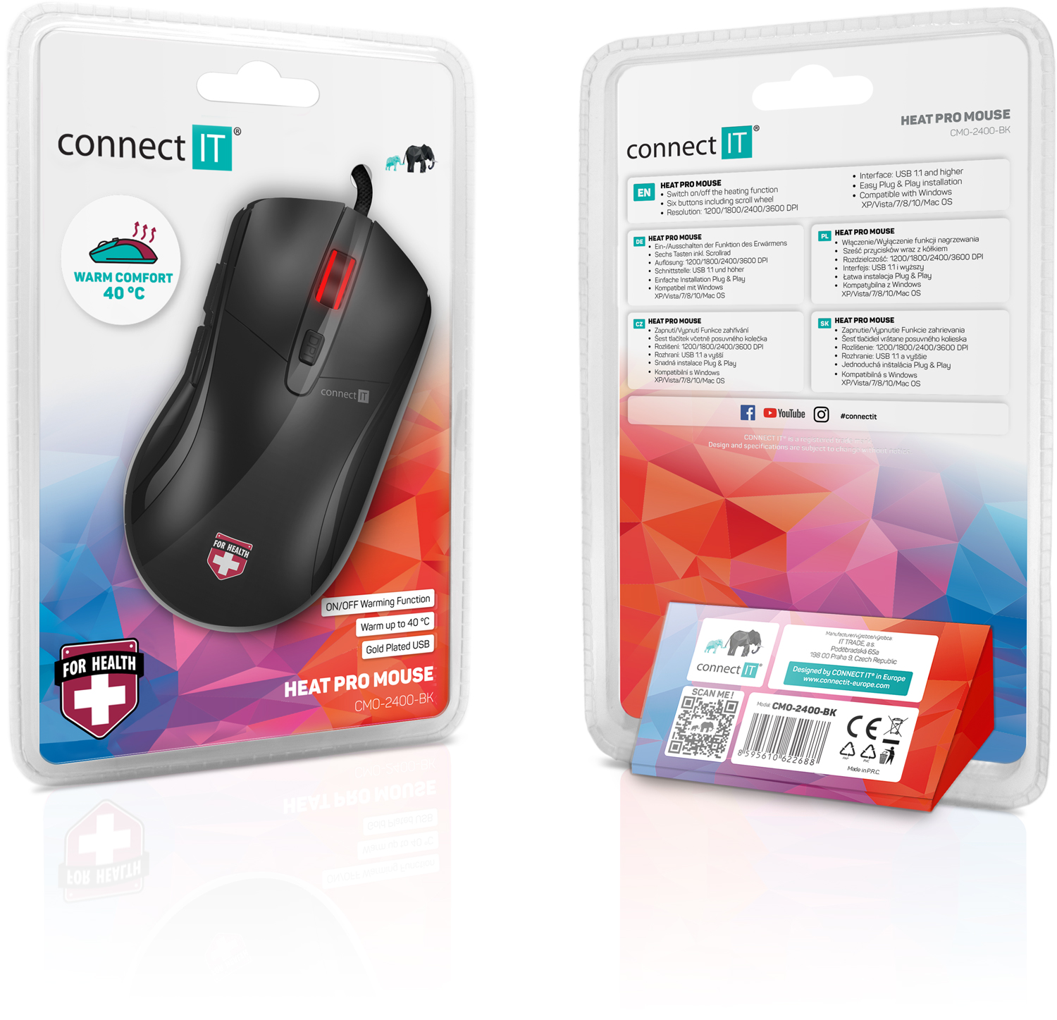 Ideální do chladnějších místností a kanceláří jako prevence proti křečovitým stažením svalstva v oblasti dlaně a jako prevence proti zánětům. Unikátní technologie WarmComfort značky CONNECT IT je vhodná pro všechny, kdo ocení vyhřívanou počítačovou myš pro vyšší komfort při celodenní práci. Teplota vyhřívání dosahuje příjemných 40 °C, což jodpovídá příjemné teplotě teplé tekoucí vody při mytí rukou.