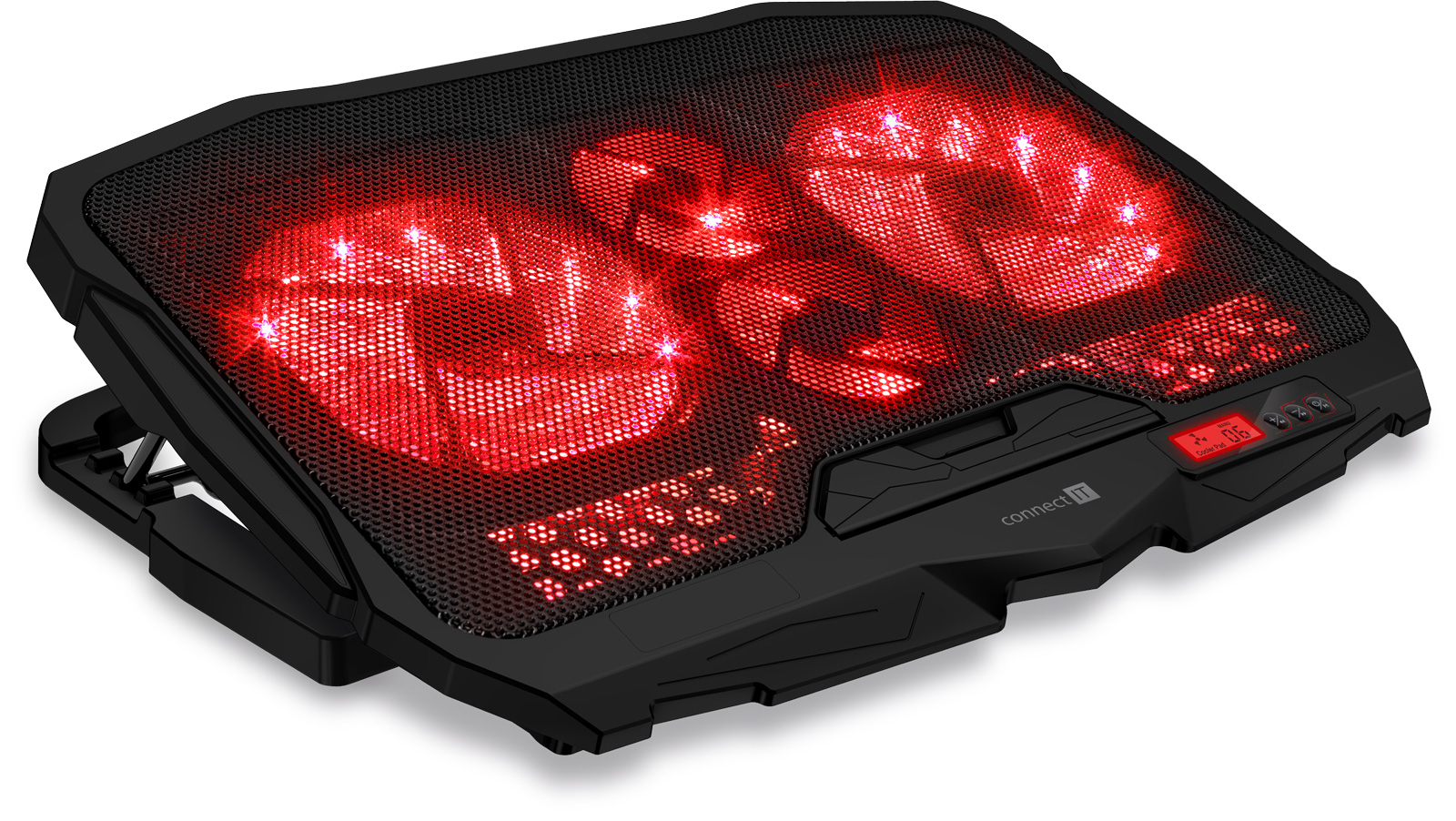 CONNECT IT FrostWind chladicí podložka pod notebook s červeným podsvícením, ČERNÁ
