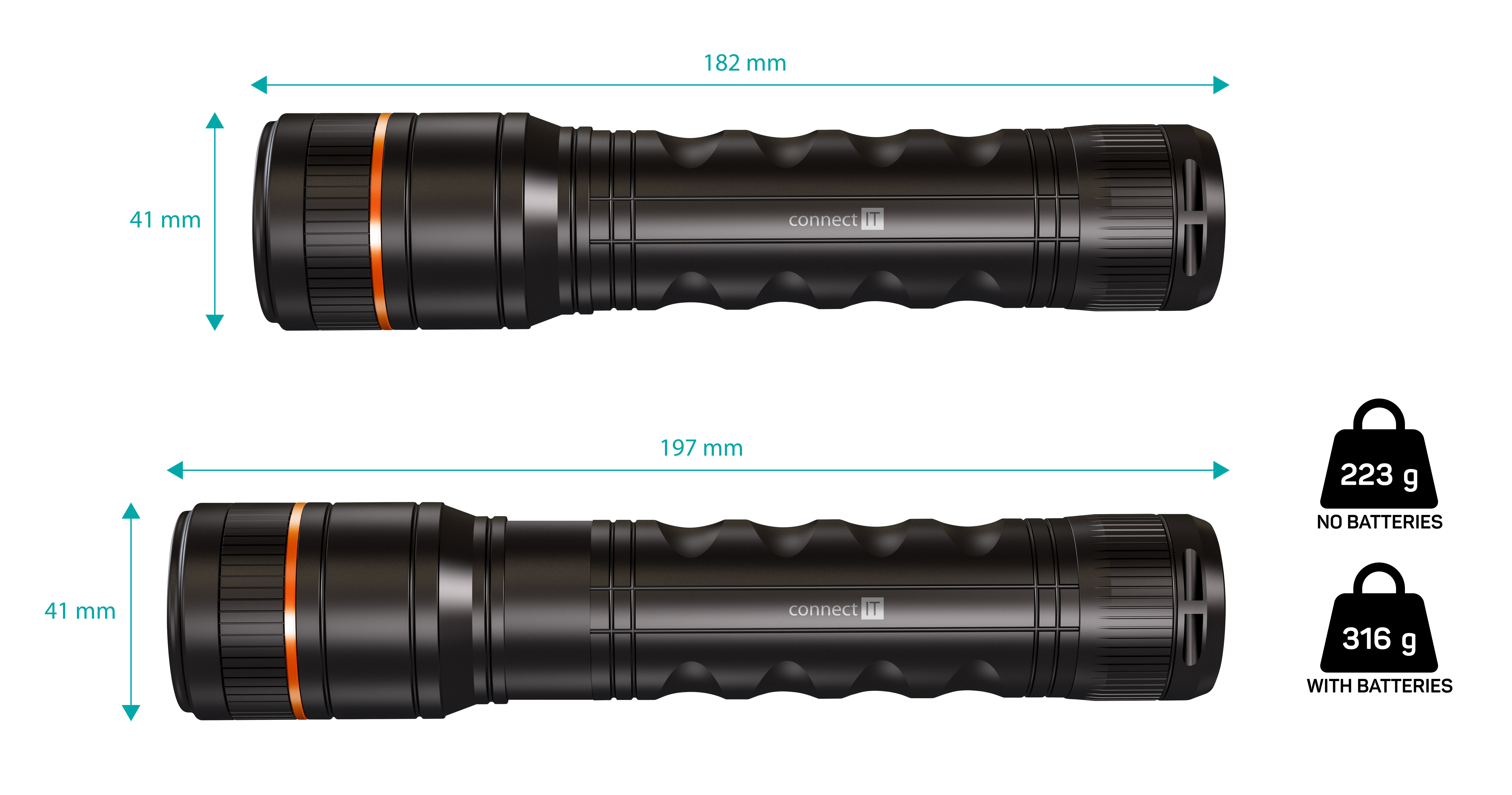 CONNECT IT GLEAM 1000 LED ruční svítilna 4x AA, ČERNÁ