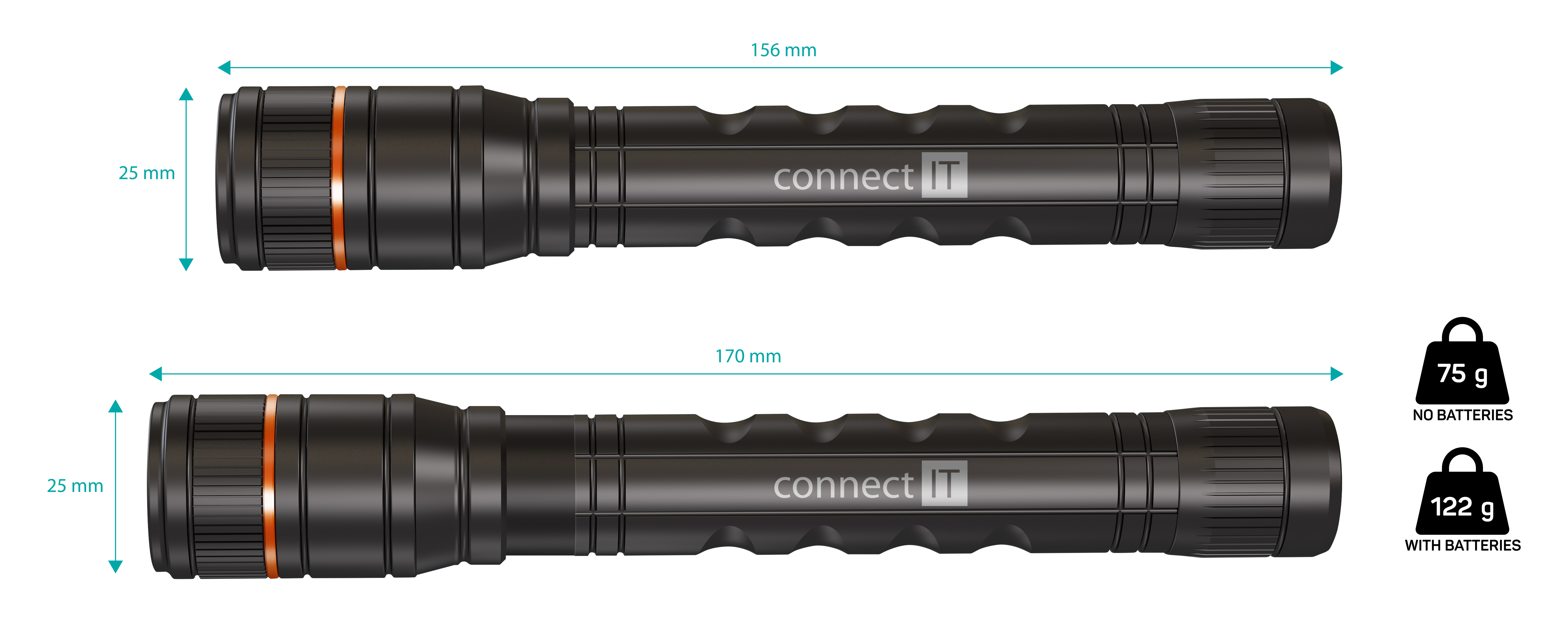 CONNECT IT GLEAM 300 LED ruční svítilna 2x AA, ČERNÁ