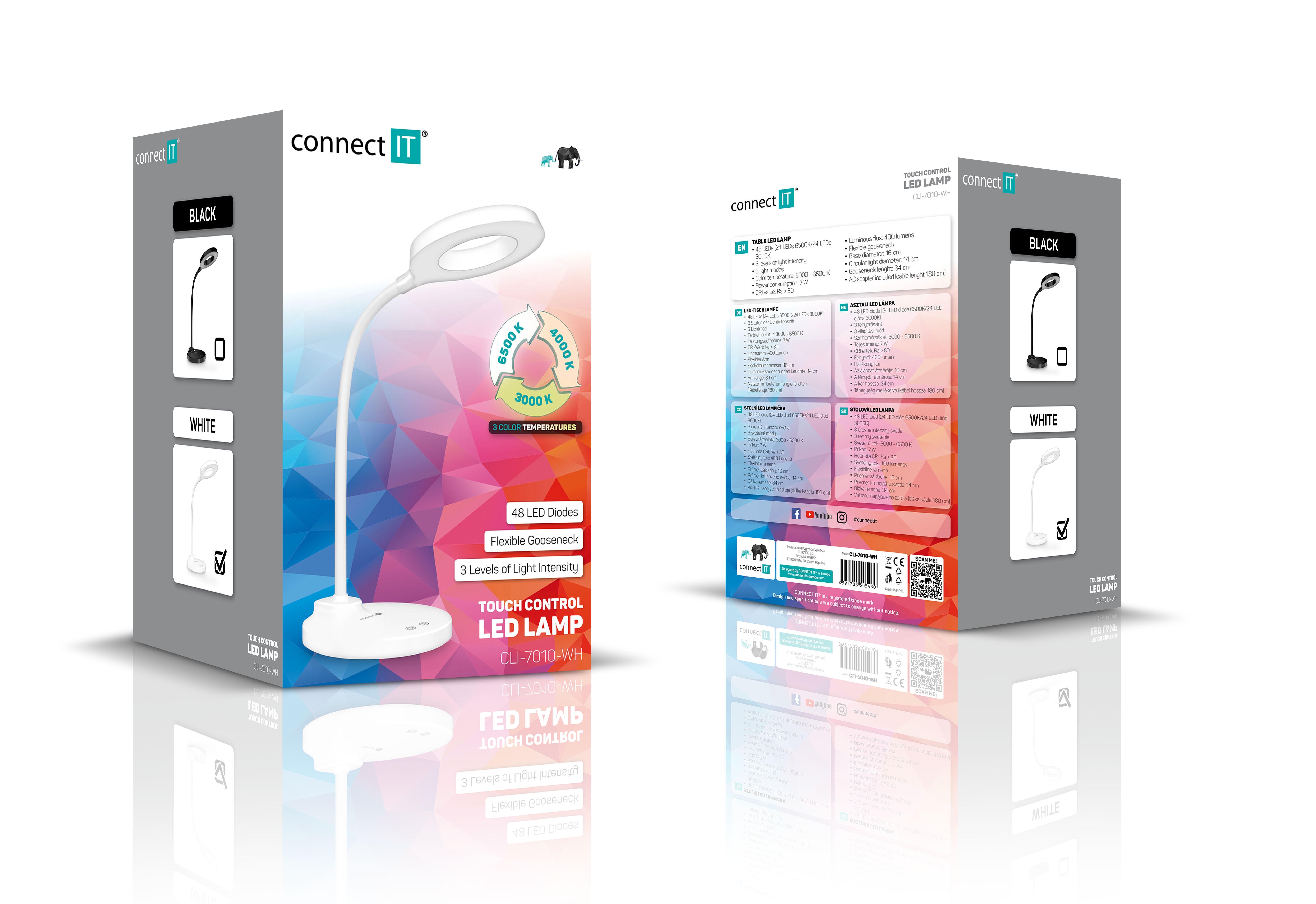 Díky flexibilnímu rameni nastavíte dokonalý úhel pro jakoukoliv práci. Lampička disponuje dvěma praktickými dotykovými spínači, které umožňují zapnout/vypnout lampu, nastavit 3 úrovně jasu světla nebo nastavit barevnou teplotu světla ve 3 různých úrovních (3000/4000/6500 K).
