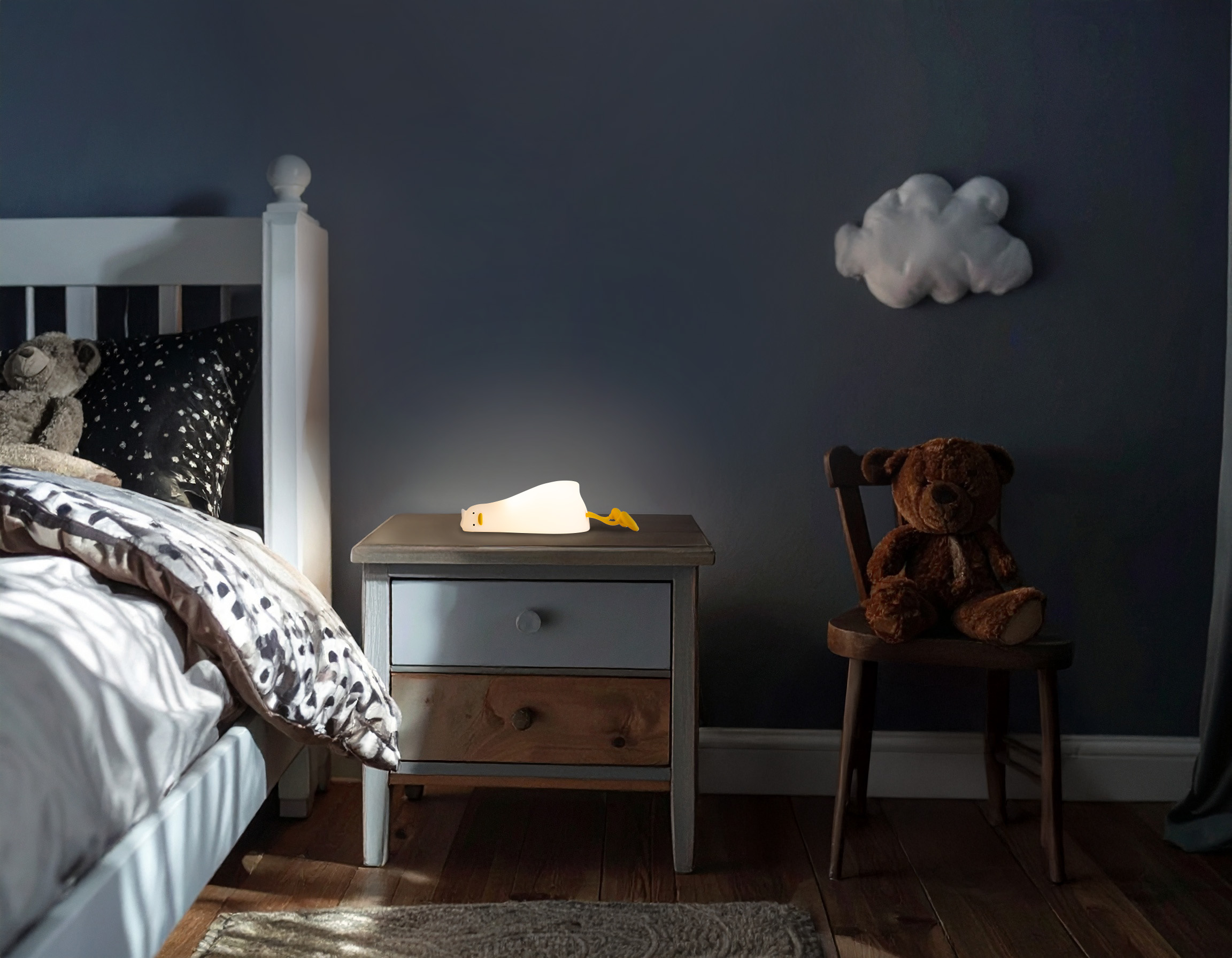 Noční LED světlo ve tvaru husy je ideální pomocník vhodný k osvětlení dětských pokojíčků. Světlo poskytuje příjemné teplé bílé světlo, které vás v noci neoslní.