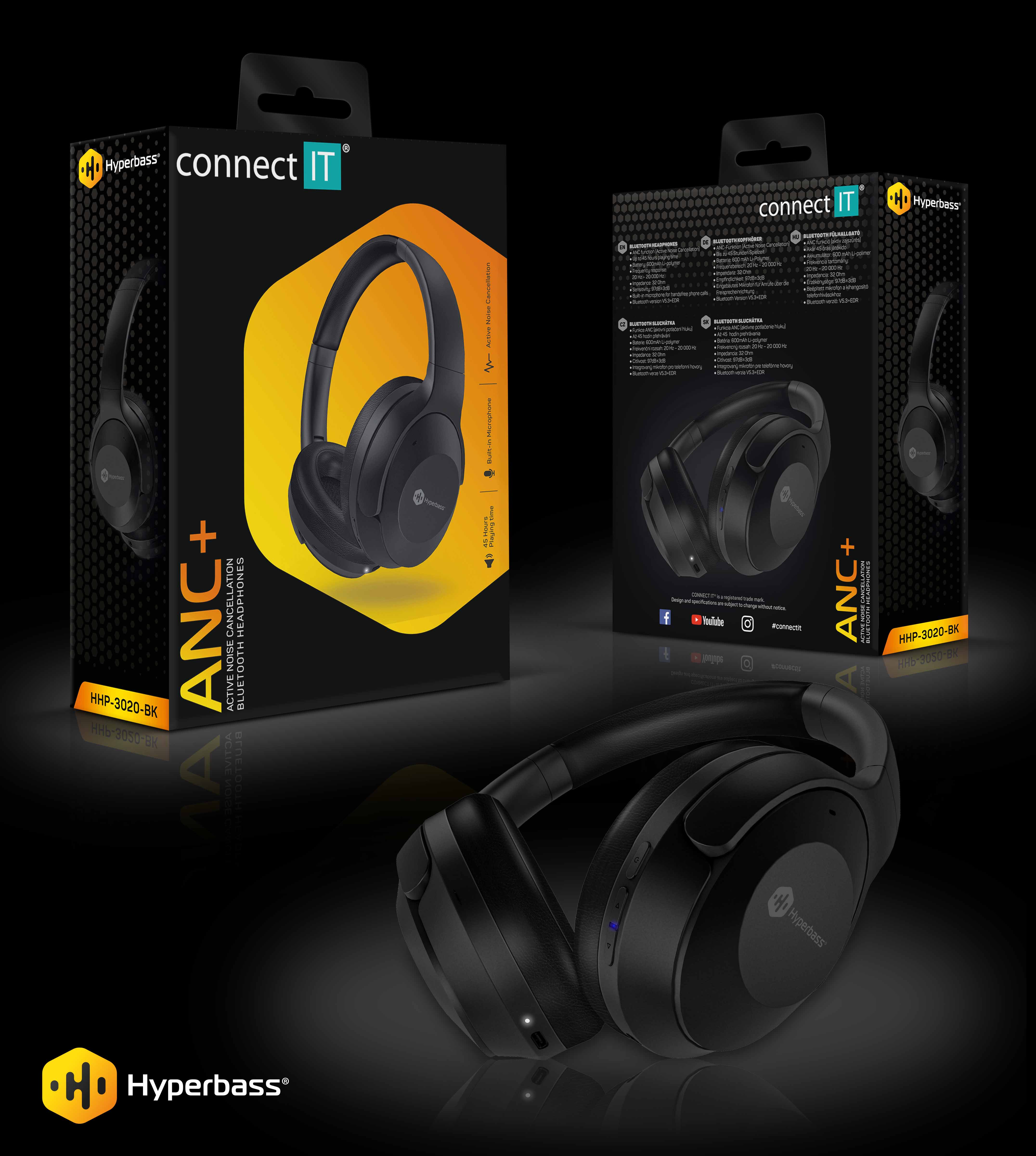 CONNECT IT Hyperbass ANC+ bezdrátová sluchátka s mikrofonem, ČERNÁ