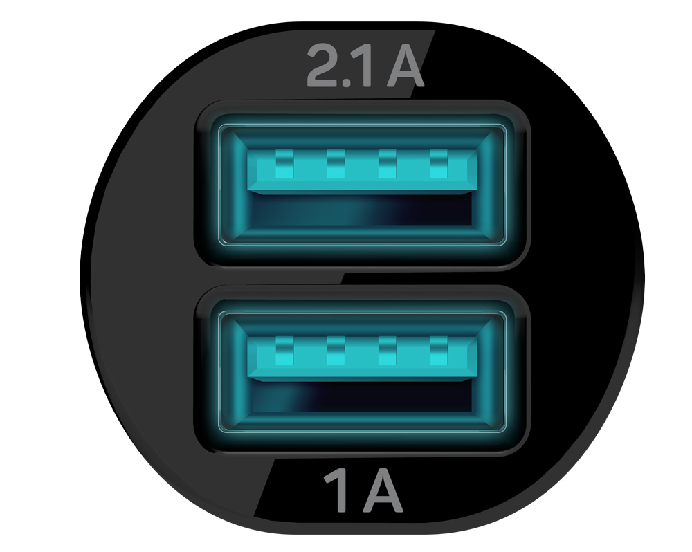 Nabíječka do auta s dvěma USB porty (1 A + 2,1 A) je vhodná pro napájení i nabíjení mobilních telefonů, MP3 přehrávačů, GPS systémy či tablety atd. Nabíječka má chranu proti zkratu a přetížení.