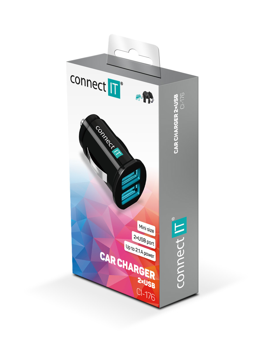CONNECT IT InCarz nabíječka do auta 2xUSB 2.1A+1A, černá