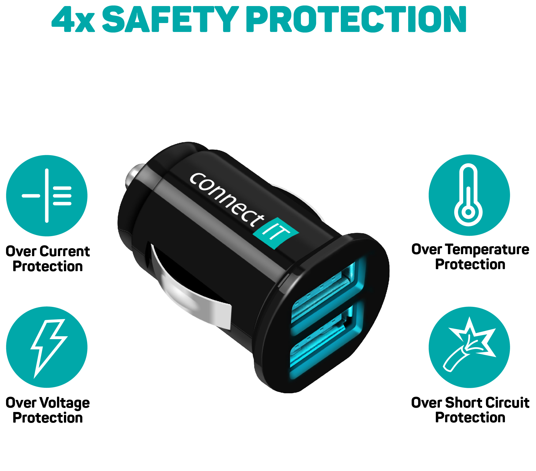 Zařízení je kompatibilní se všemi 12/24 V zásuvkami cigaretového zapalovače v automobilech. Ultra-kompaktní rozměr (samotné tělo nabíječky je vysoké pouze 35 mm, přesah po zasunutí pouze 6 mm).