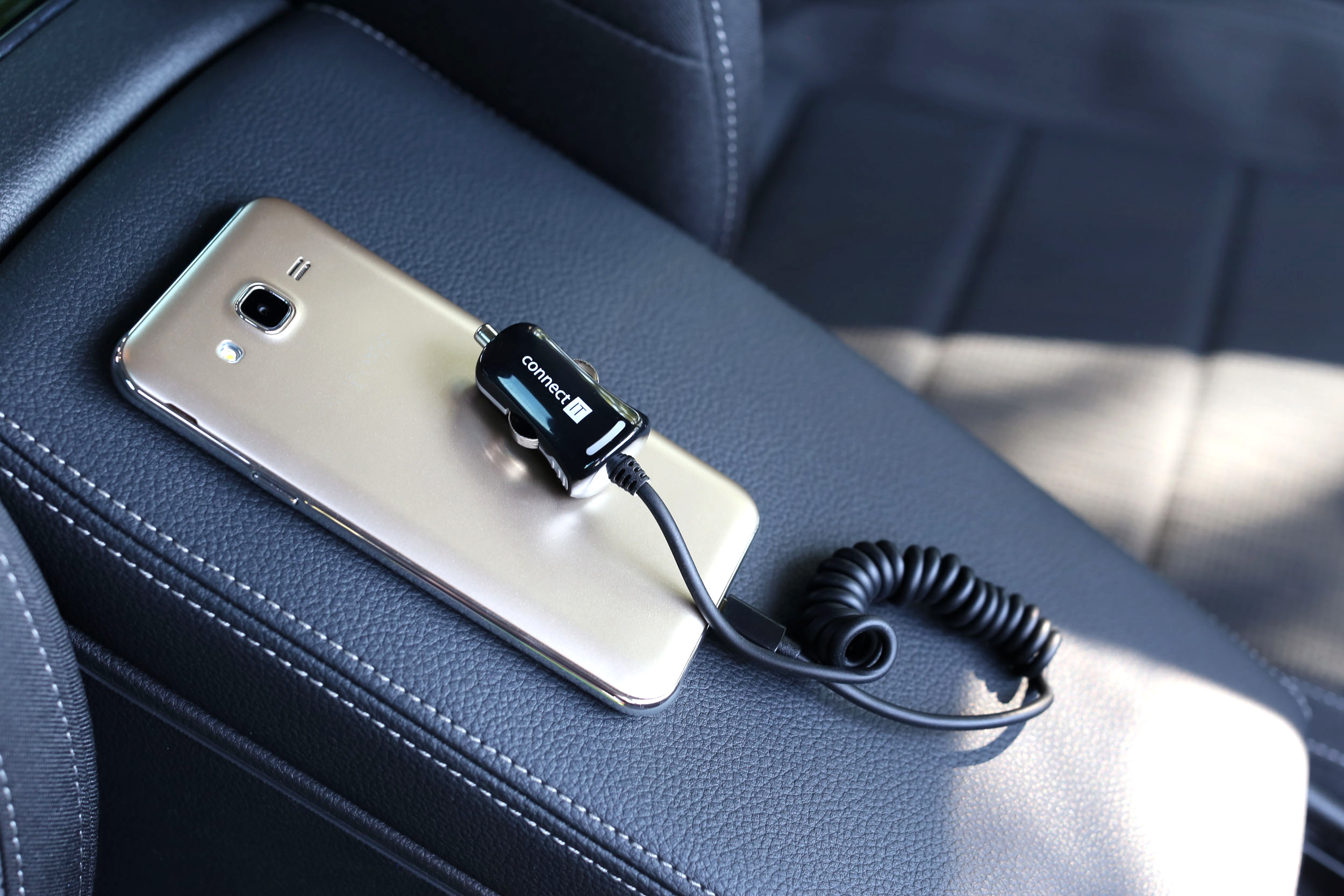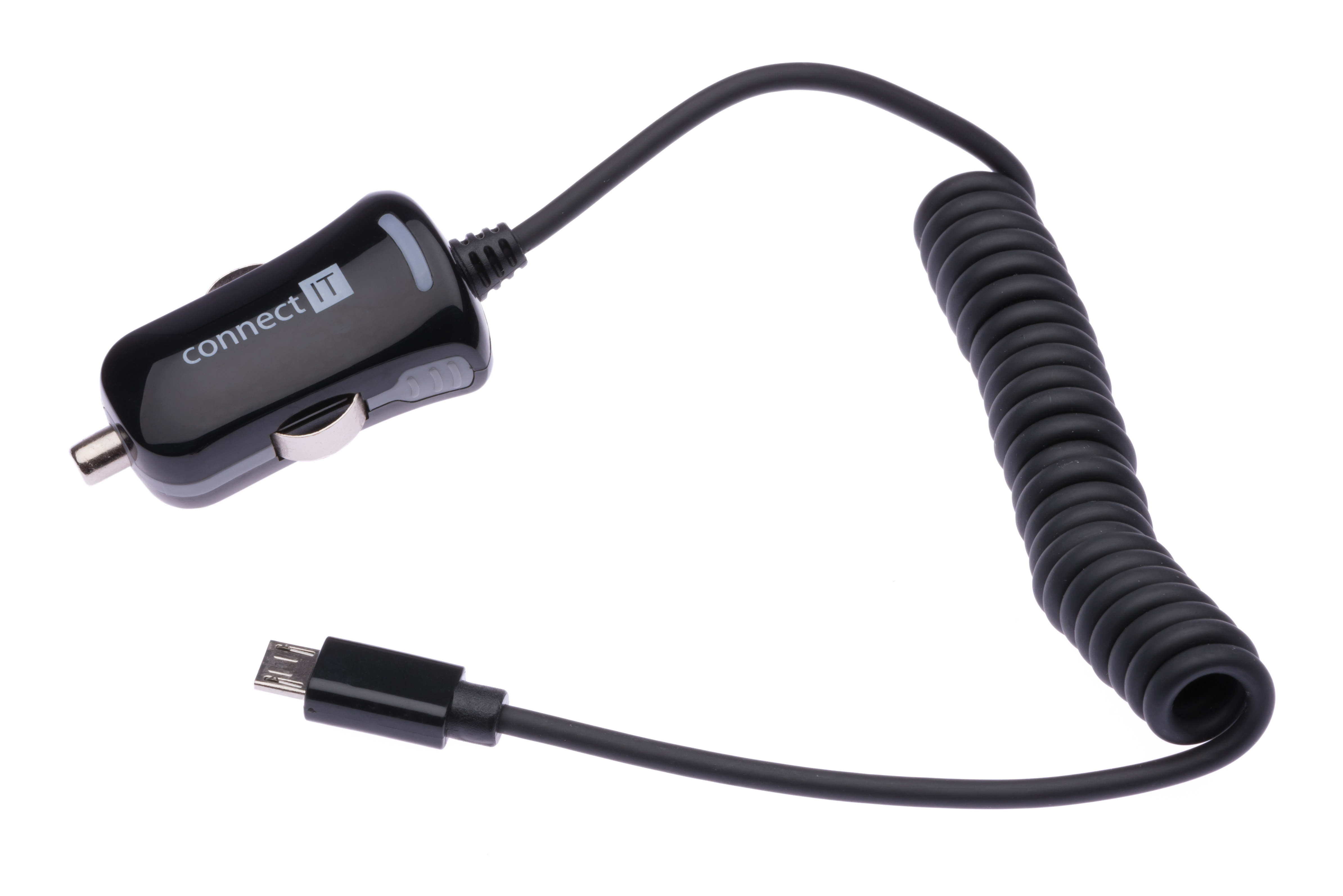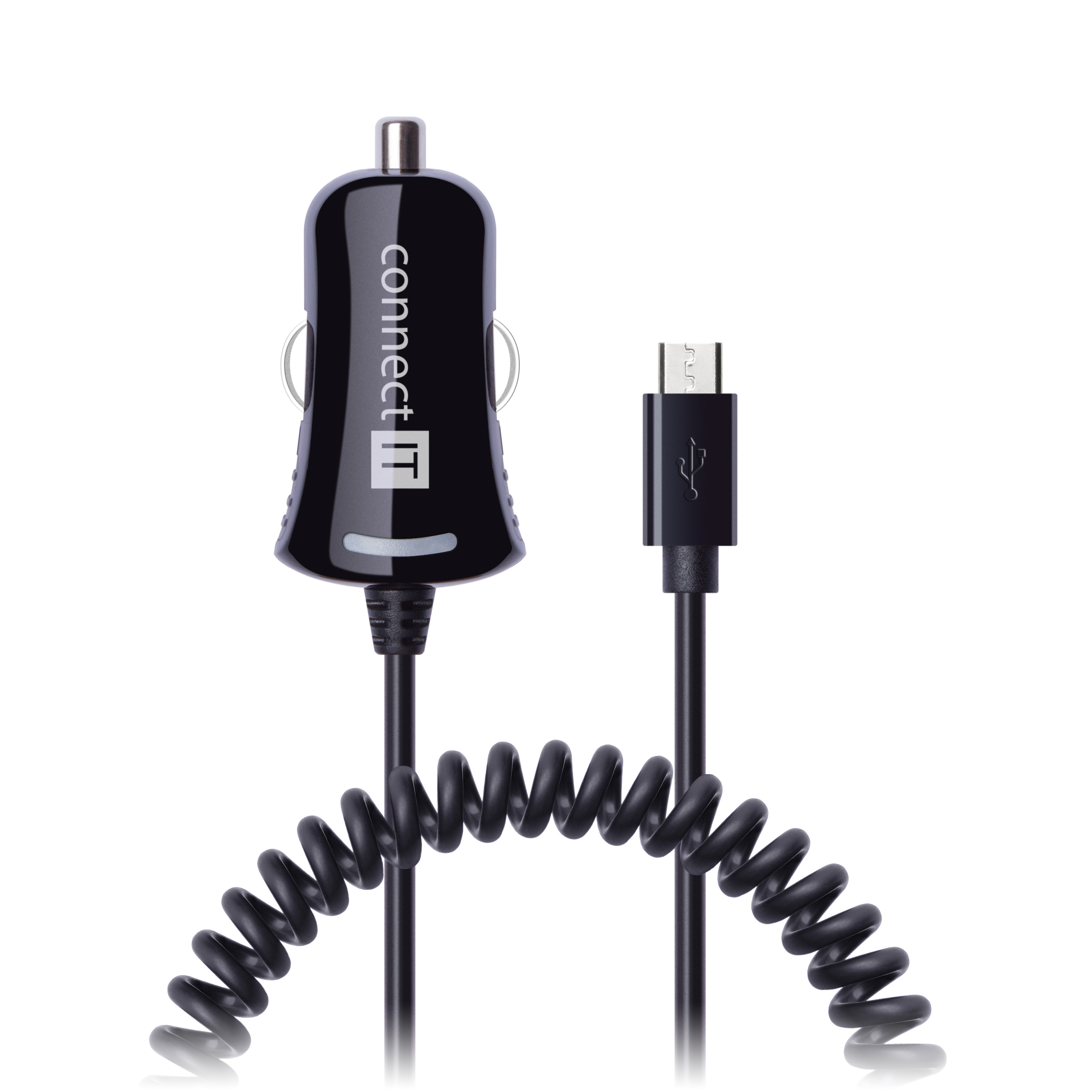 CONNECT IT InCarz nabíječka do auta Micro-USB 2,1A, 1m spirálový flexibilní kabel, černá