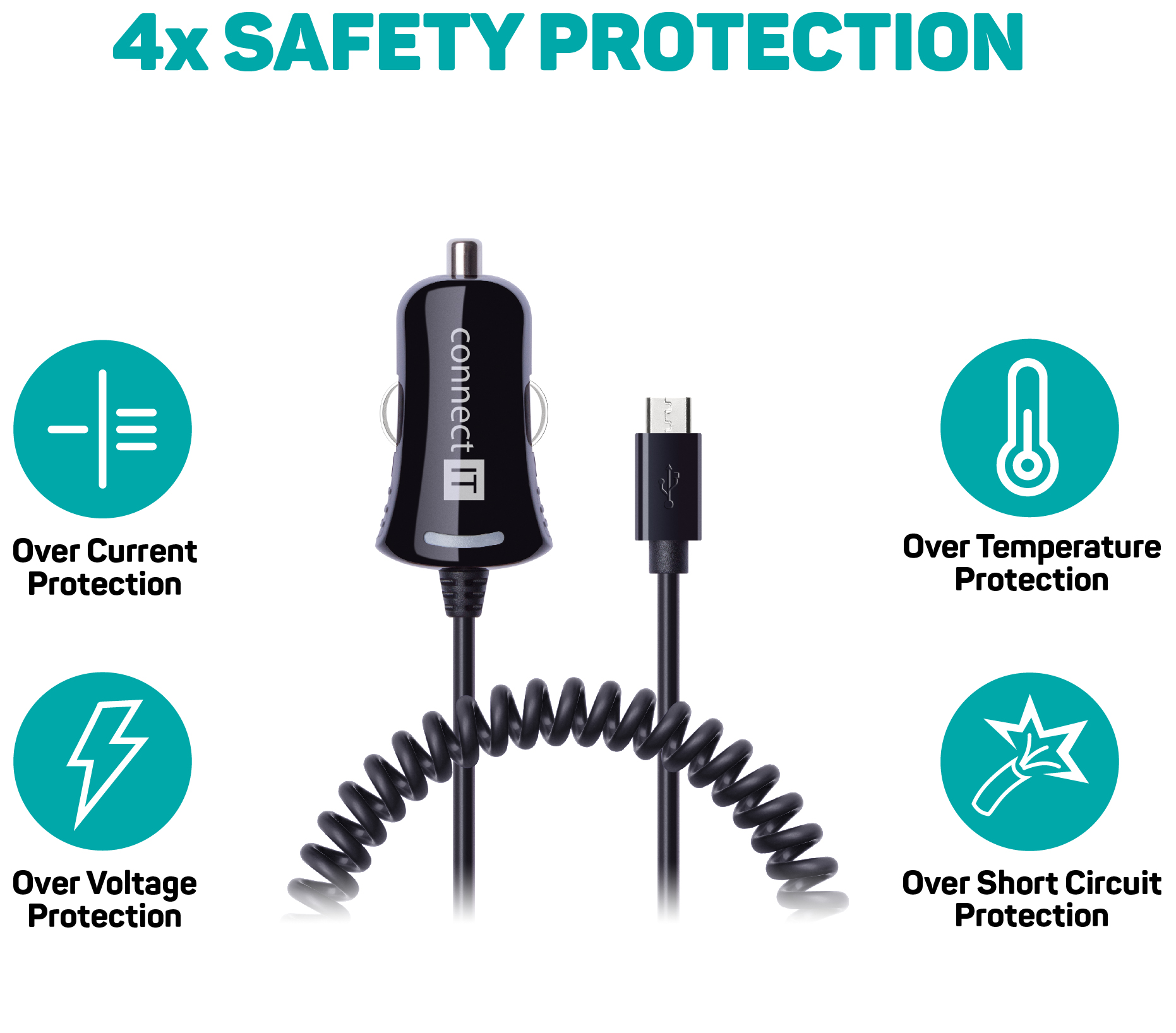 InCarz Curly Micro-USB BLACK