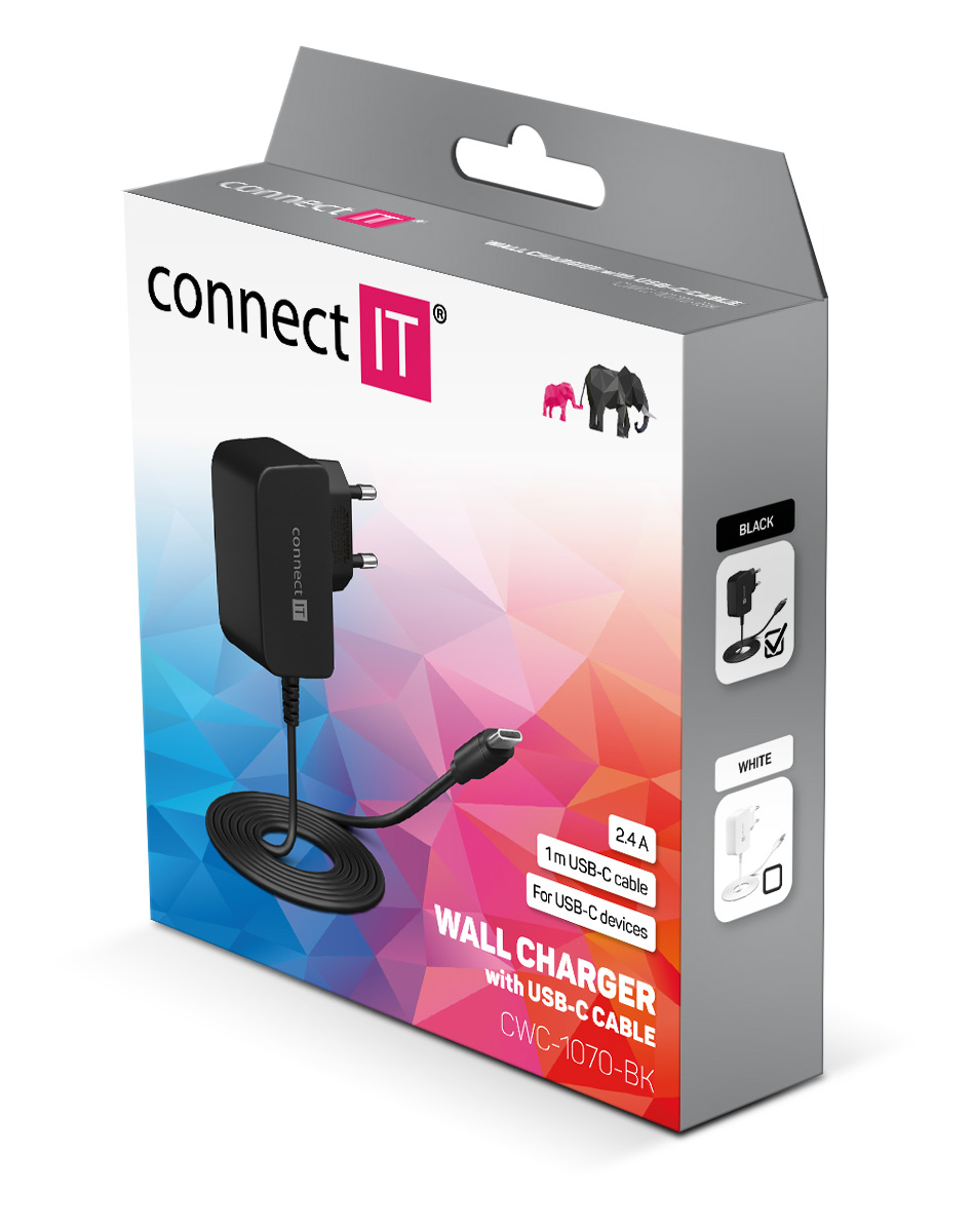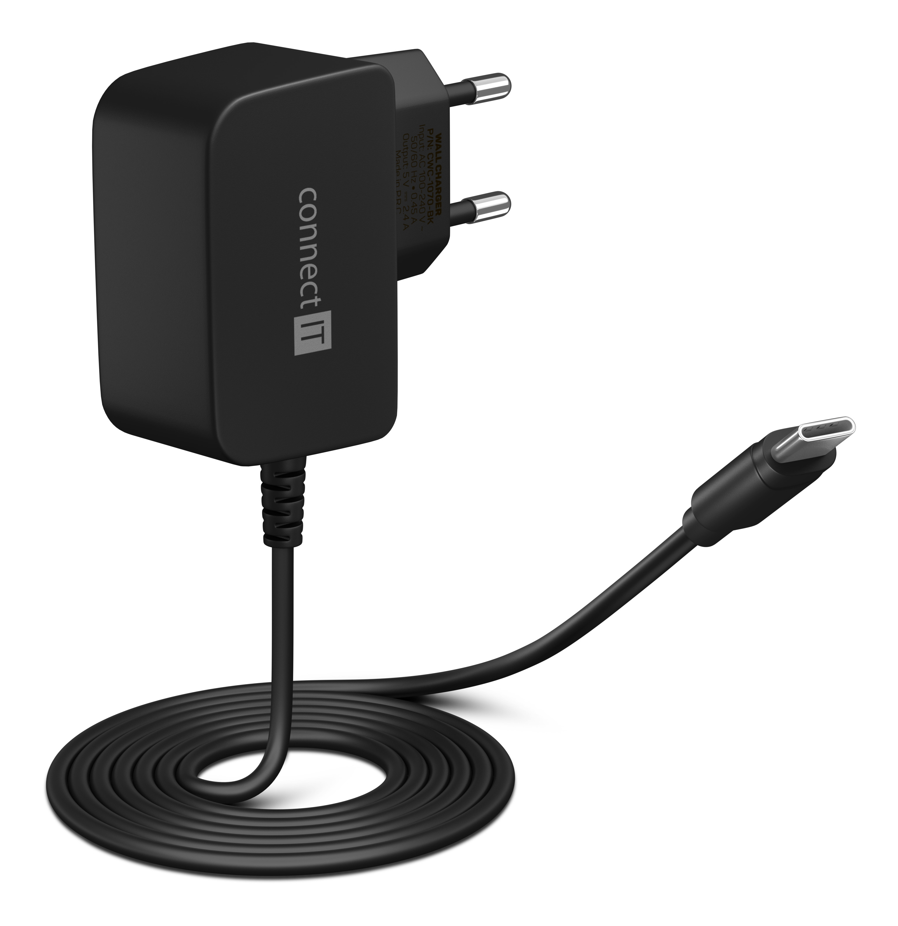 CONNECT IT InWallz SNAKE nabíjecí adaptér s kabelem USB-C, 2,4A, černý