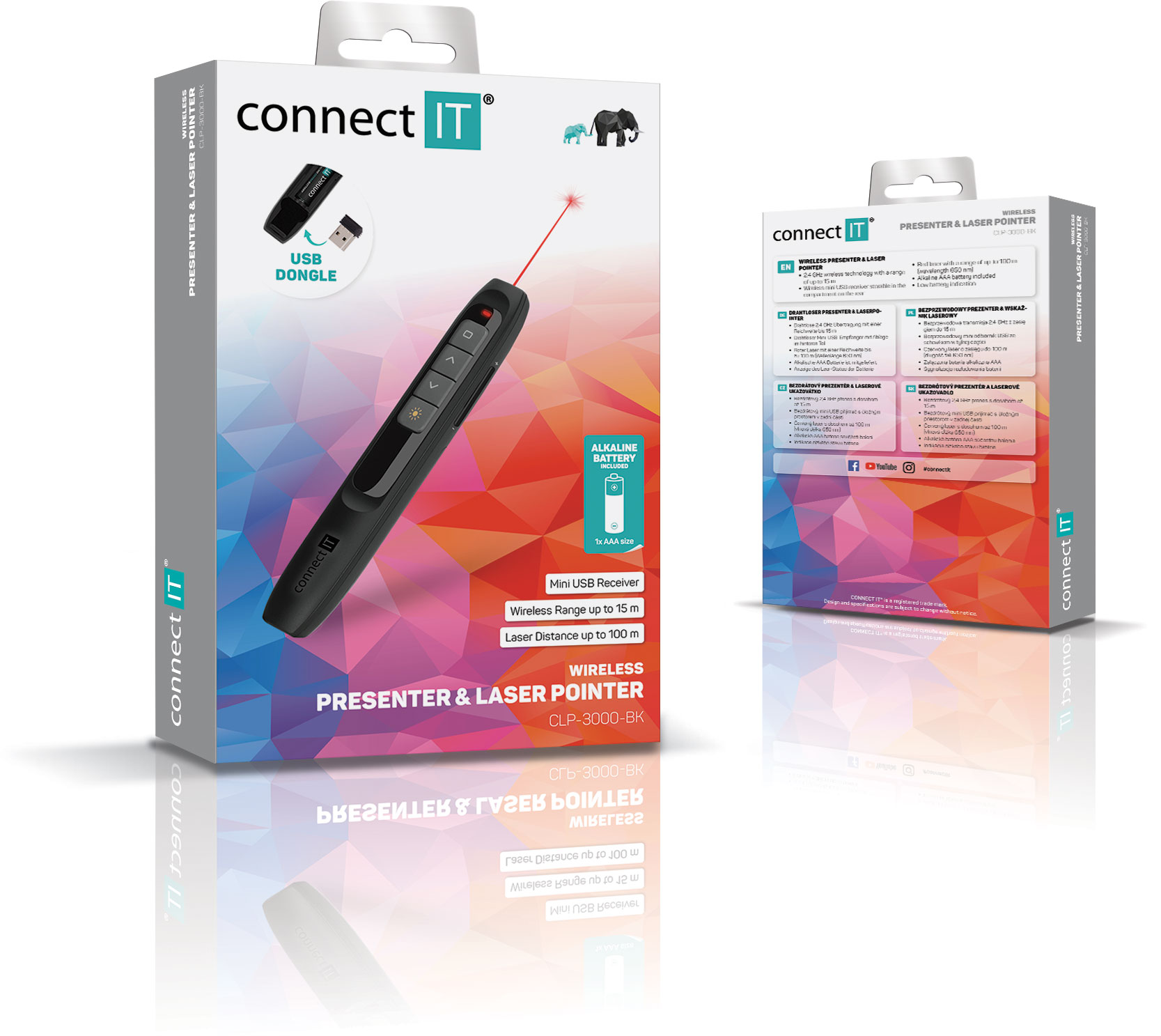 Bezdrátový prezentér s laserovým ukazovátkem CLP-3000-BK vyniká bezdrátovým dosahem až 15 metrů a obdivuhodným dosahem laseru 100 metrů s dvojnásobně lepší viditelností oproti běžným laserům.