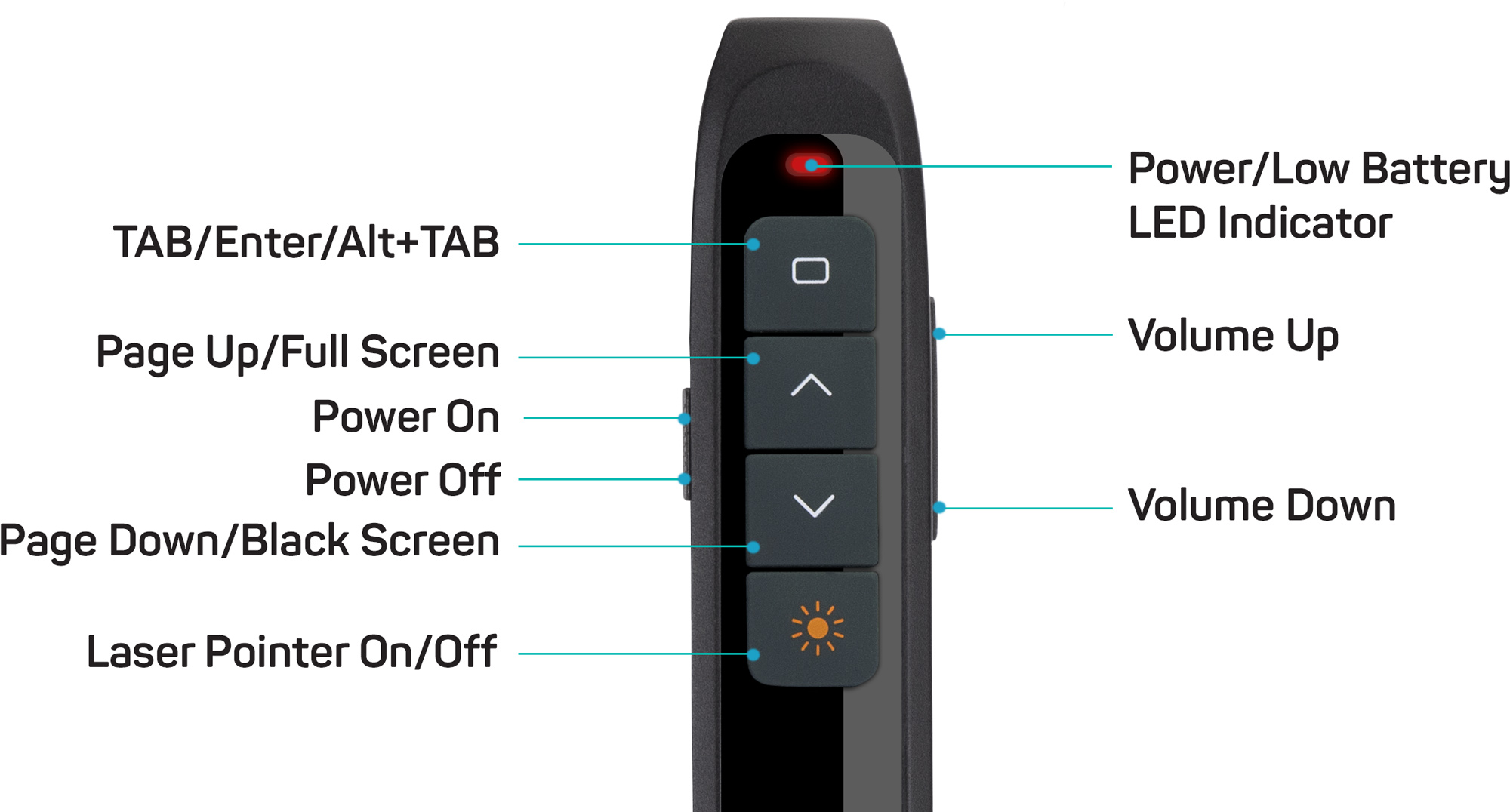 Optimální kombinace bezdrátového prezentéru a laserového ukazovátka z vás udělá profesionála na jakékoliv poradě, přednáčce nebo prezentaci. Zamilujete si ho díky jeho nízké hmotnosti a perfektně štíhlému tvaru padnoucímu do každé ruky. V zadní části se nachází praktická schránka na USB přijímač, který už nikdy neztratíte.