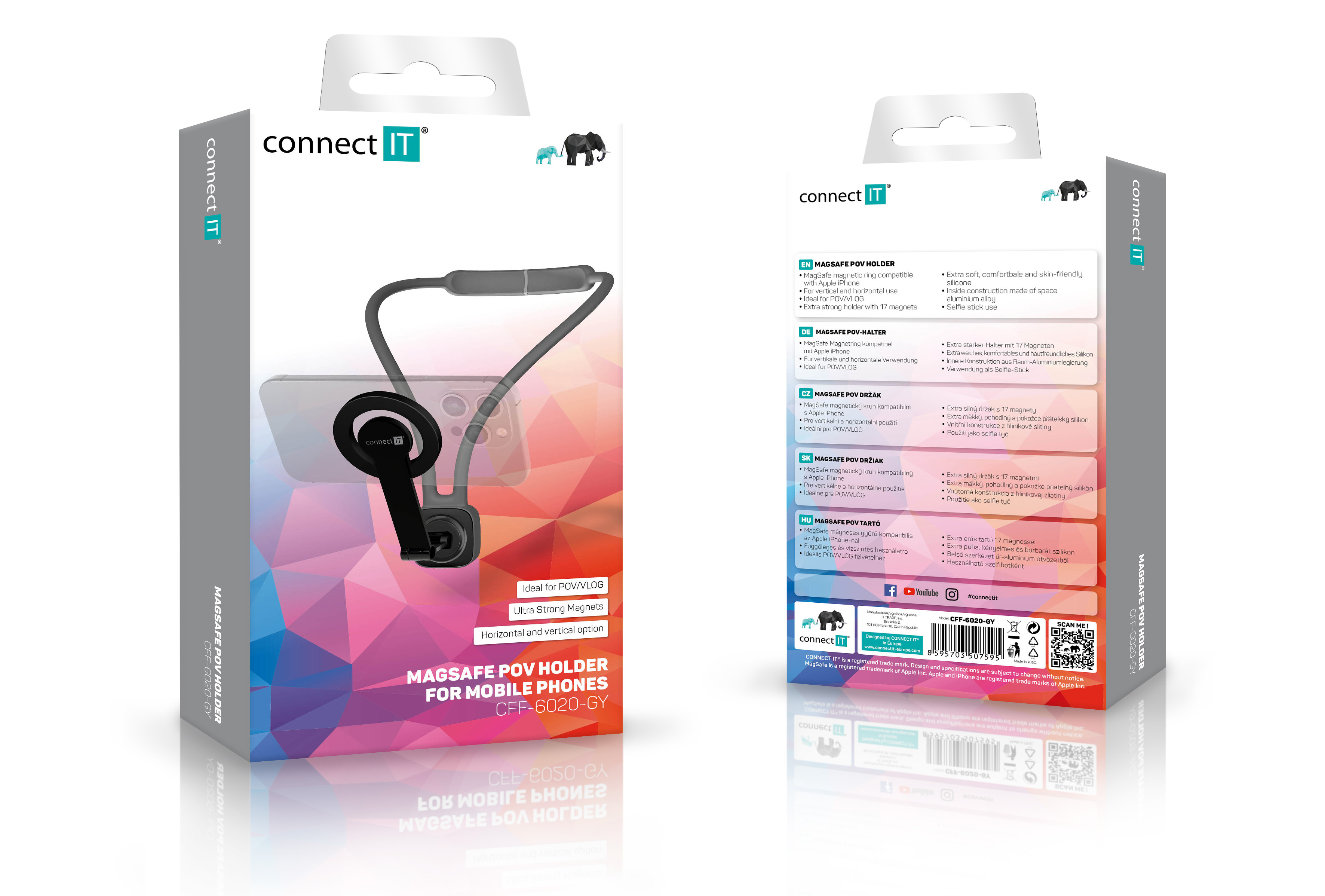 CONNECT IT MagSafe POV magnetický držák na telefon ŠEDÝ