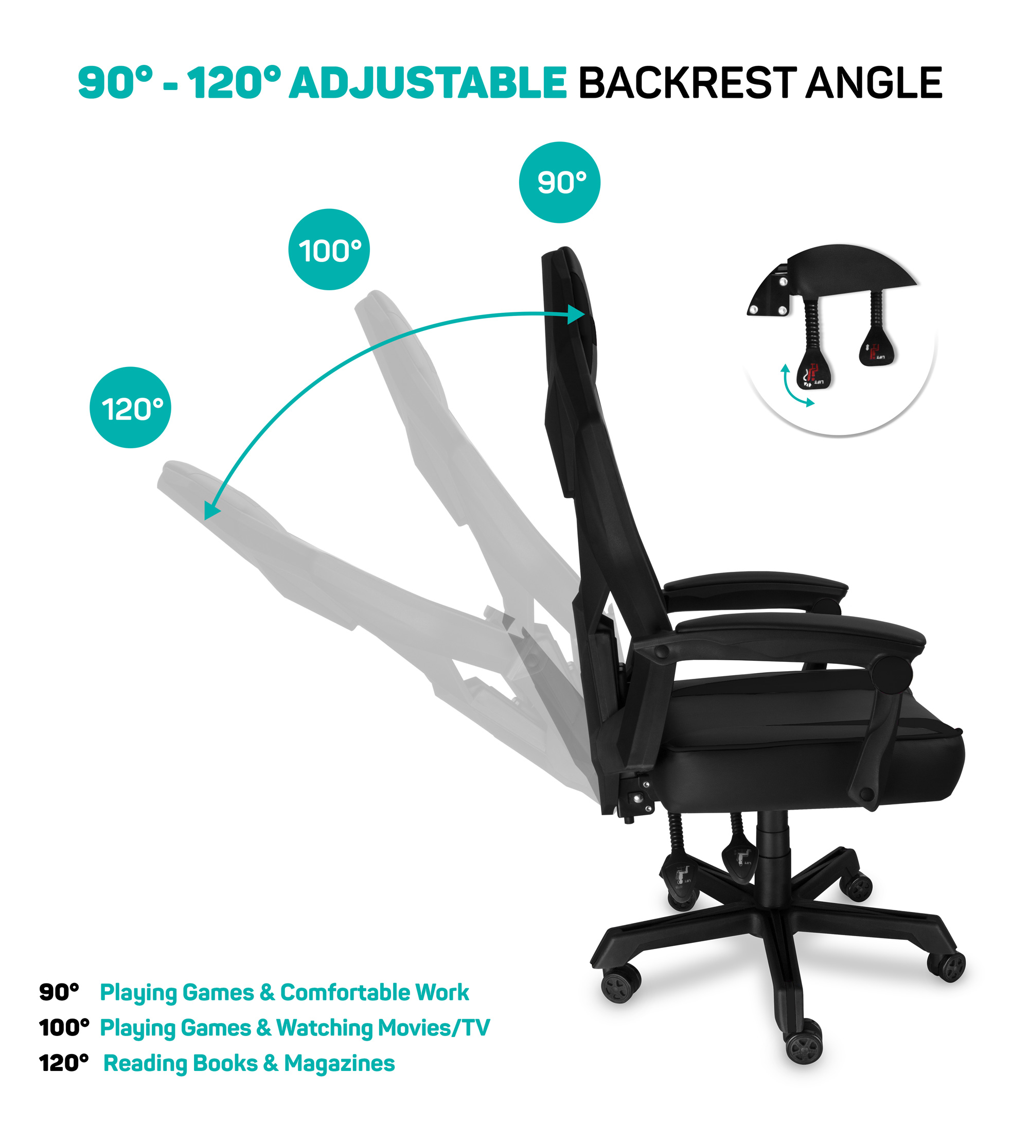 Sklon opěradla 120° umožňuje pohodlné sledování videa nebo hraní her na konzoli