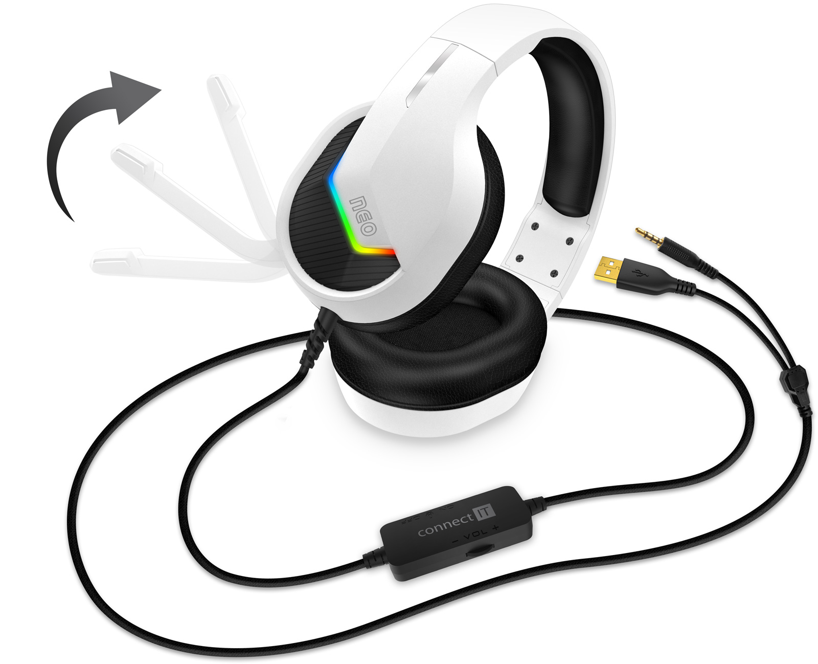 CONNECT IT NEO herní sluchátka s mikrofonem, 1xJack+USB, BÍLÁ