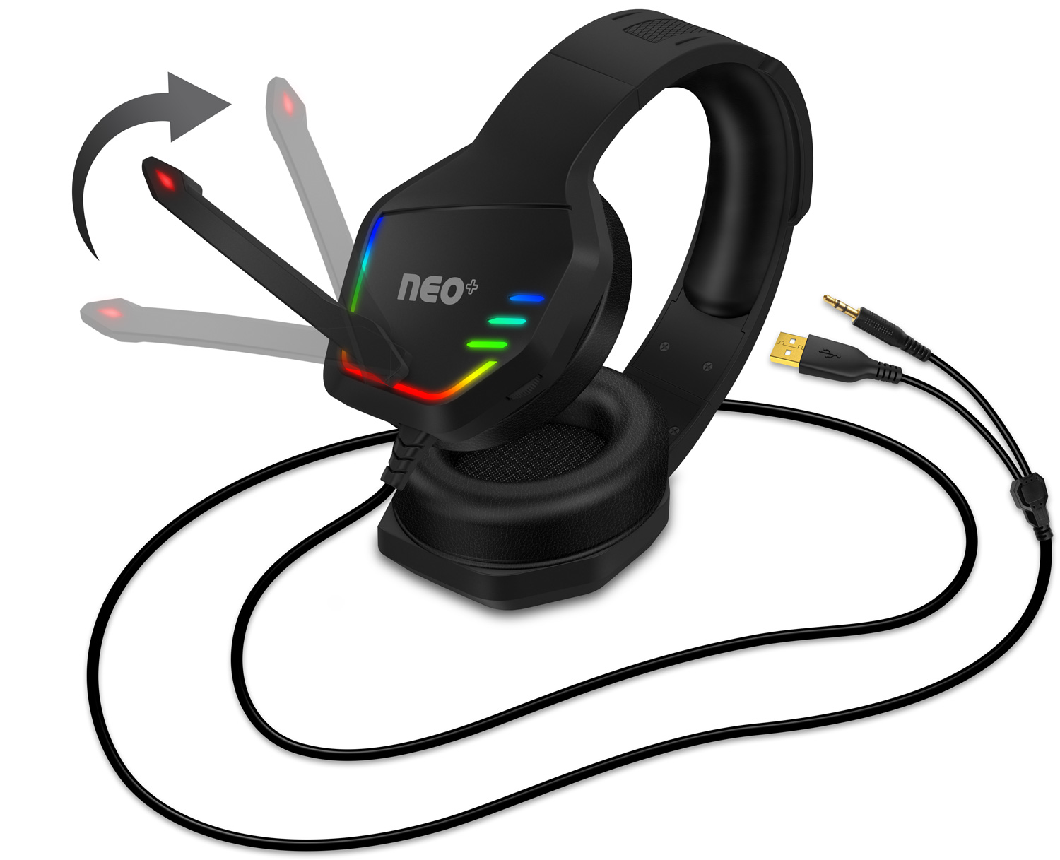 Profesionální gamingová sluchátka se sklápěcím mikrofonem NEO+ s podsvětlením pro hráče počítačových her