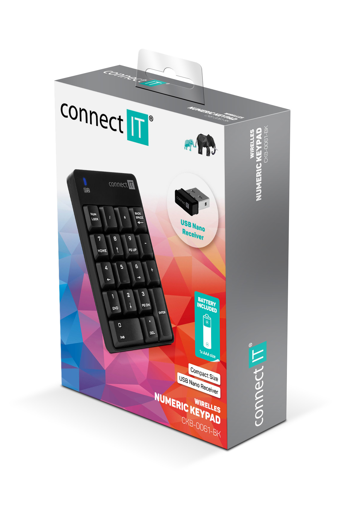 CONNECT IT NumCALC bezdrátová numerická klávesnice, (+ 1x AAA baterie zdarma), ČERNÁ