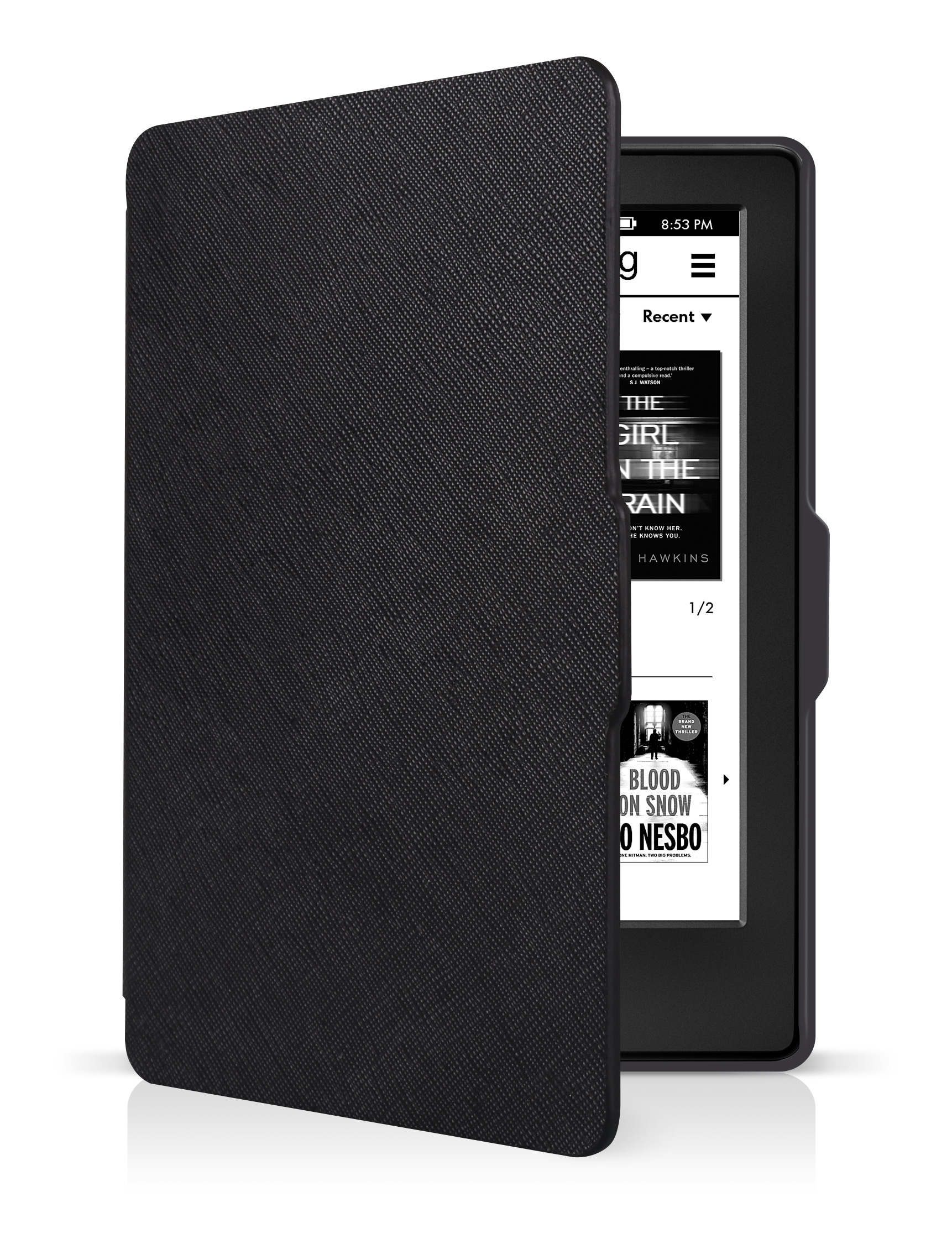 Přední kryt otočný o 360° umožňuje pohodlné čtení v jedné ruce (stačí otevřít a překlopit)
