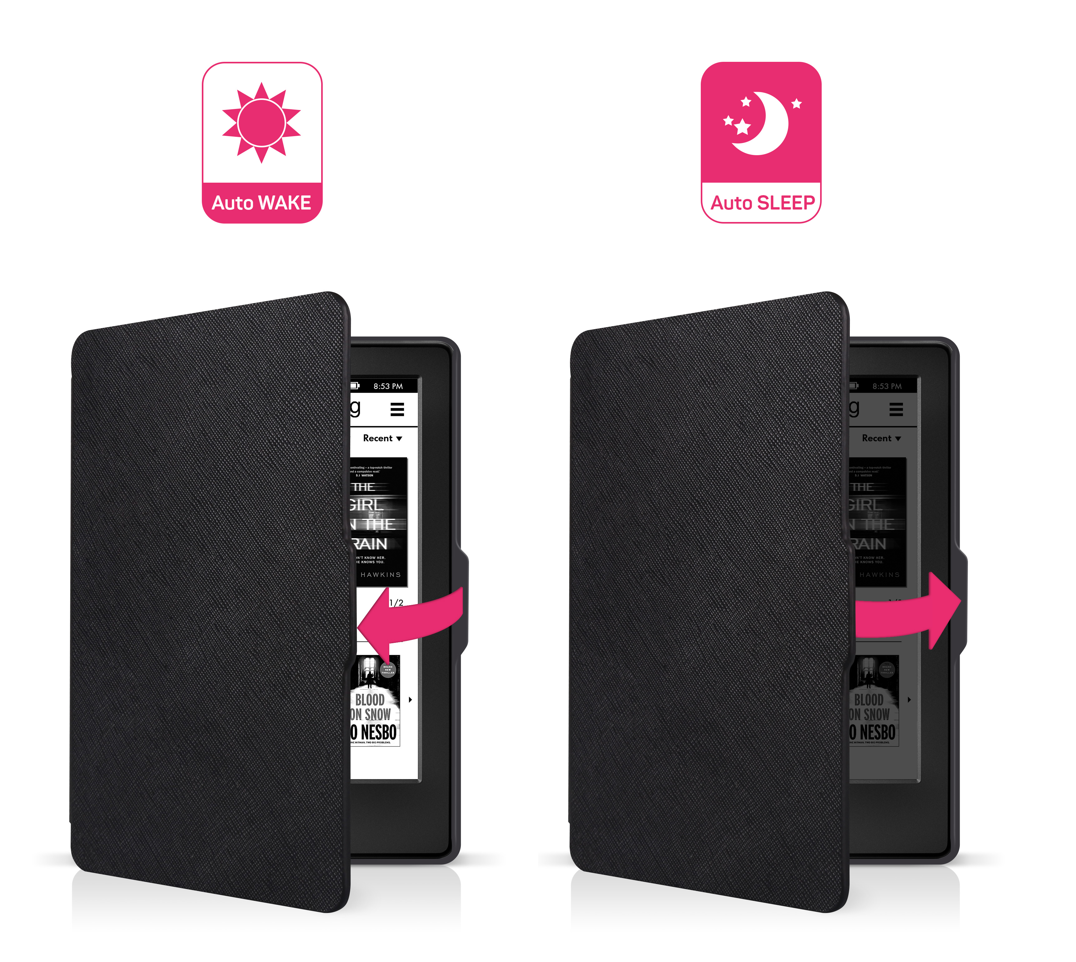Podpora funkce automatického usínání a probouzení čtečky při zavírání a otevírání pouzdra