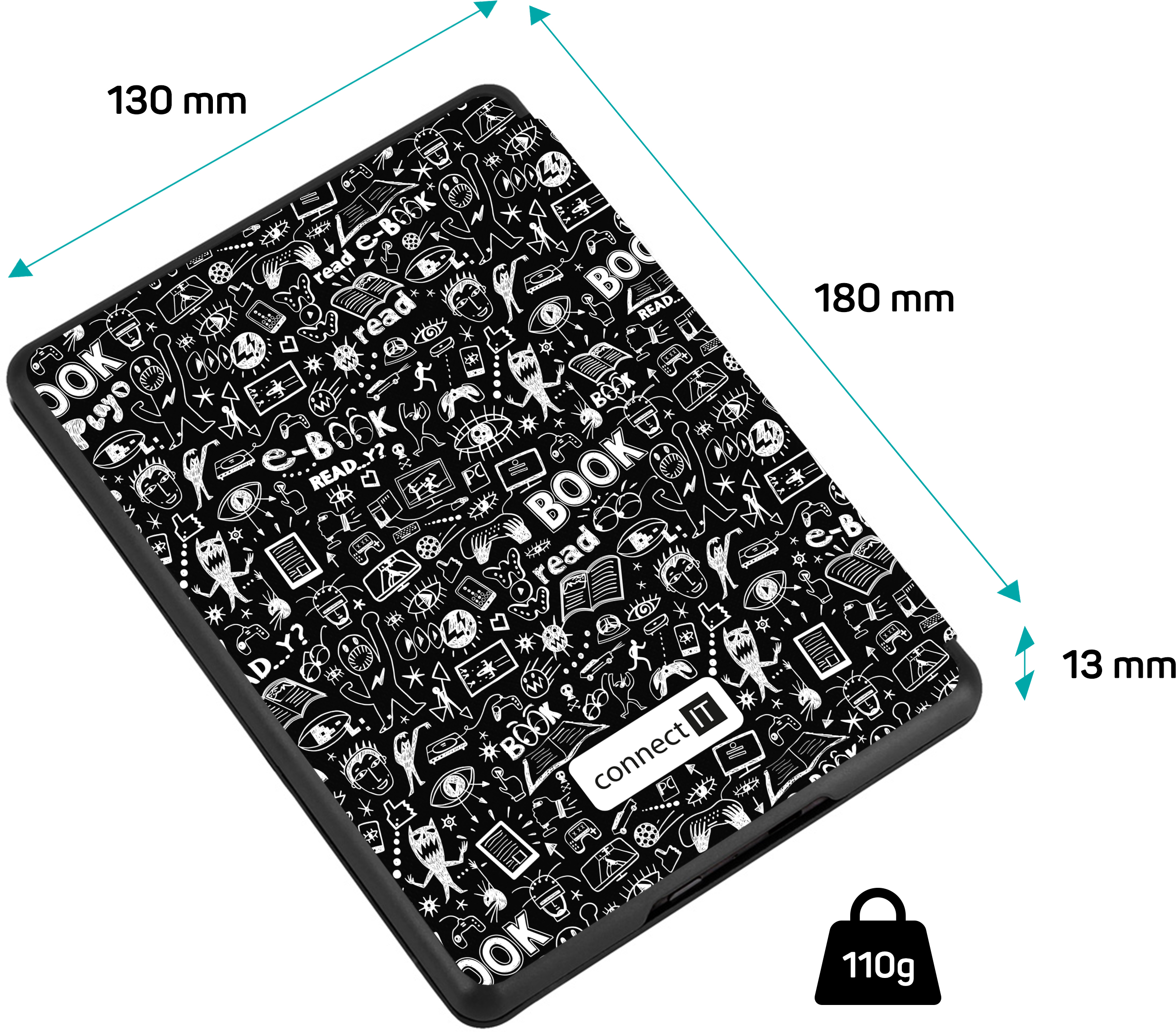 CONNECT IT pouzdro pro Amazon Kindle Paperwhite 5 2021 (11th gen.), DOODLE ČERNÁ