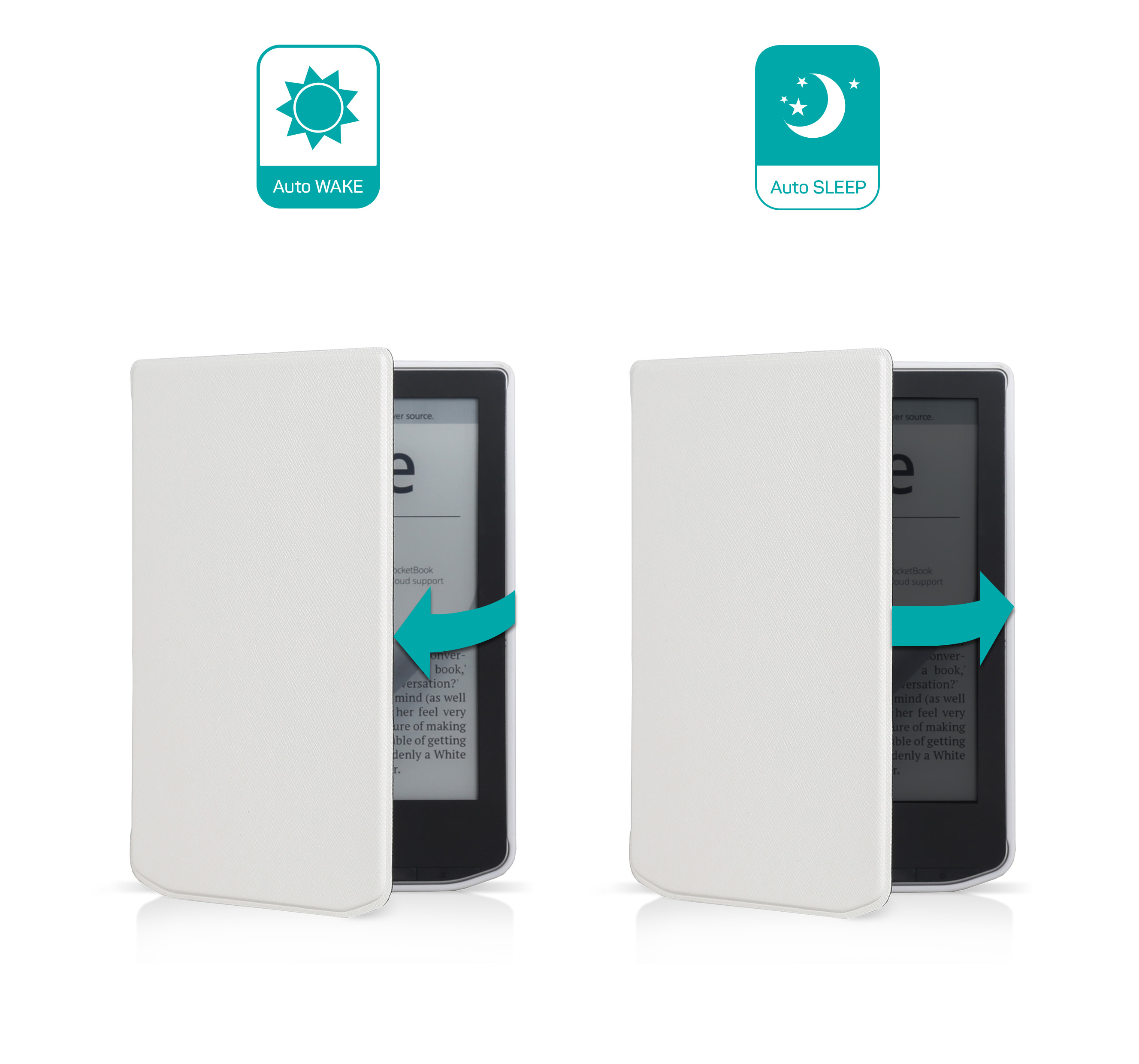 Přední kryt otočný o 360° umožňuje pohodlné čtení v jedné ruce (stačí otevřít a překlopit)