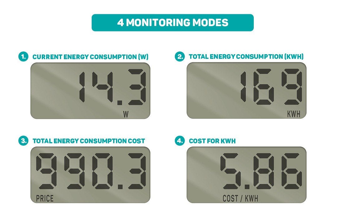 Měřič spotřeby elektrické energie dokáže vypočítat odpovídající finanční náklady a odhalit, který spotřebič odebírá nejvíce elektrické energie a jeho provoz je tedy nejnákladnější. Mezi další funkce měřiče patří měření okamžitého odebíraného výkonu. Tyto informace Vám mohou přispět ke snížení nákladů za elektrickou energii. Měřič je vybaven interní pamětí pro uložení nastavení a údajů v přístoji.